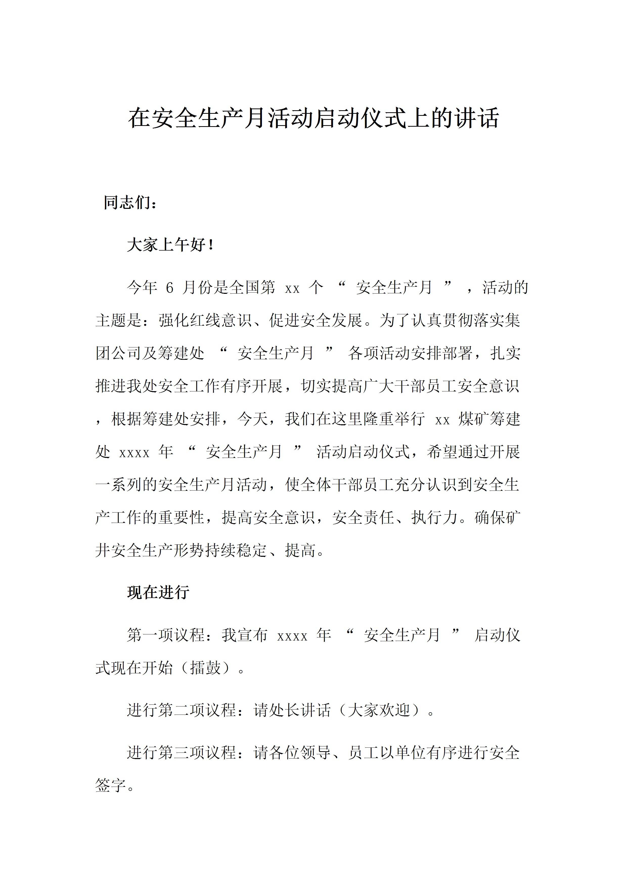 【发言材料】在安全生产月活动启动仪式上的讲话