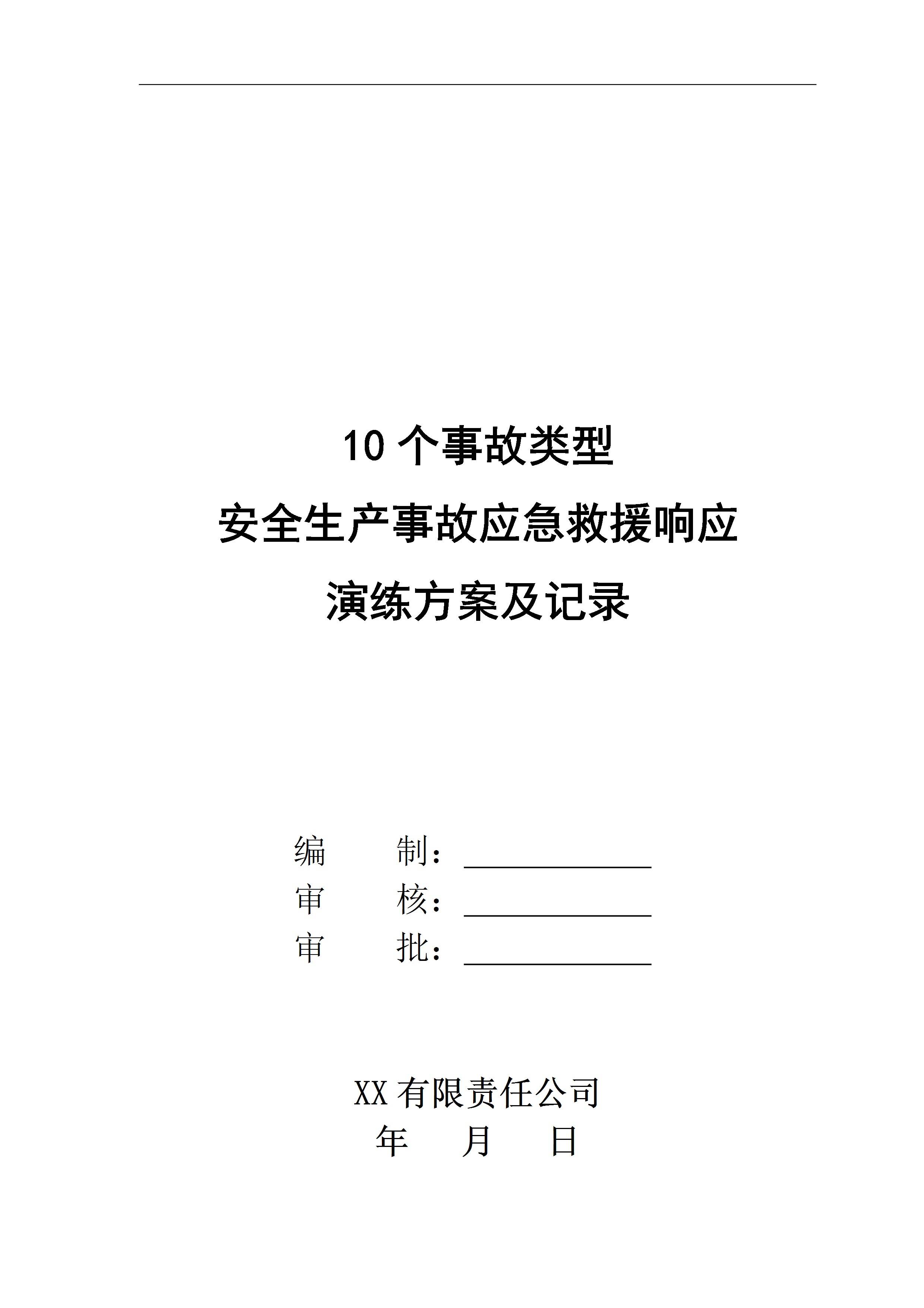 / 10个事故类型安全生产事故应急救援响应演练方案及记录