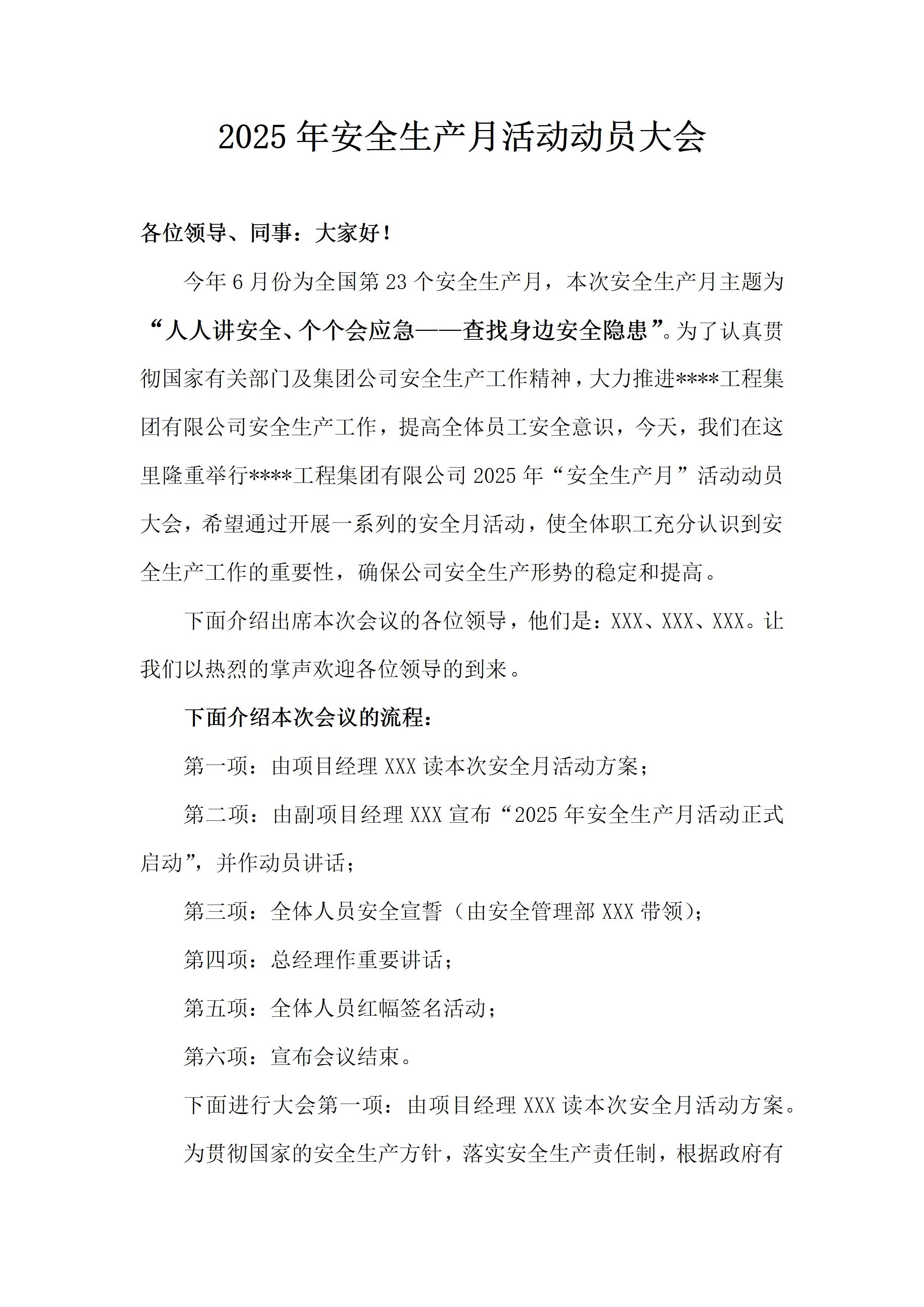 【方案】2025年安全生产月动员大会方案(含讲话,5页)