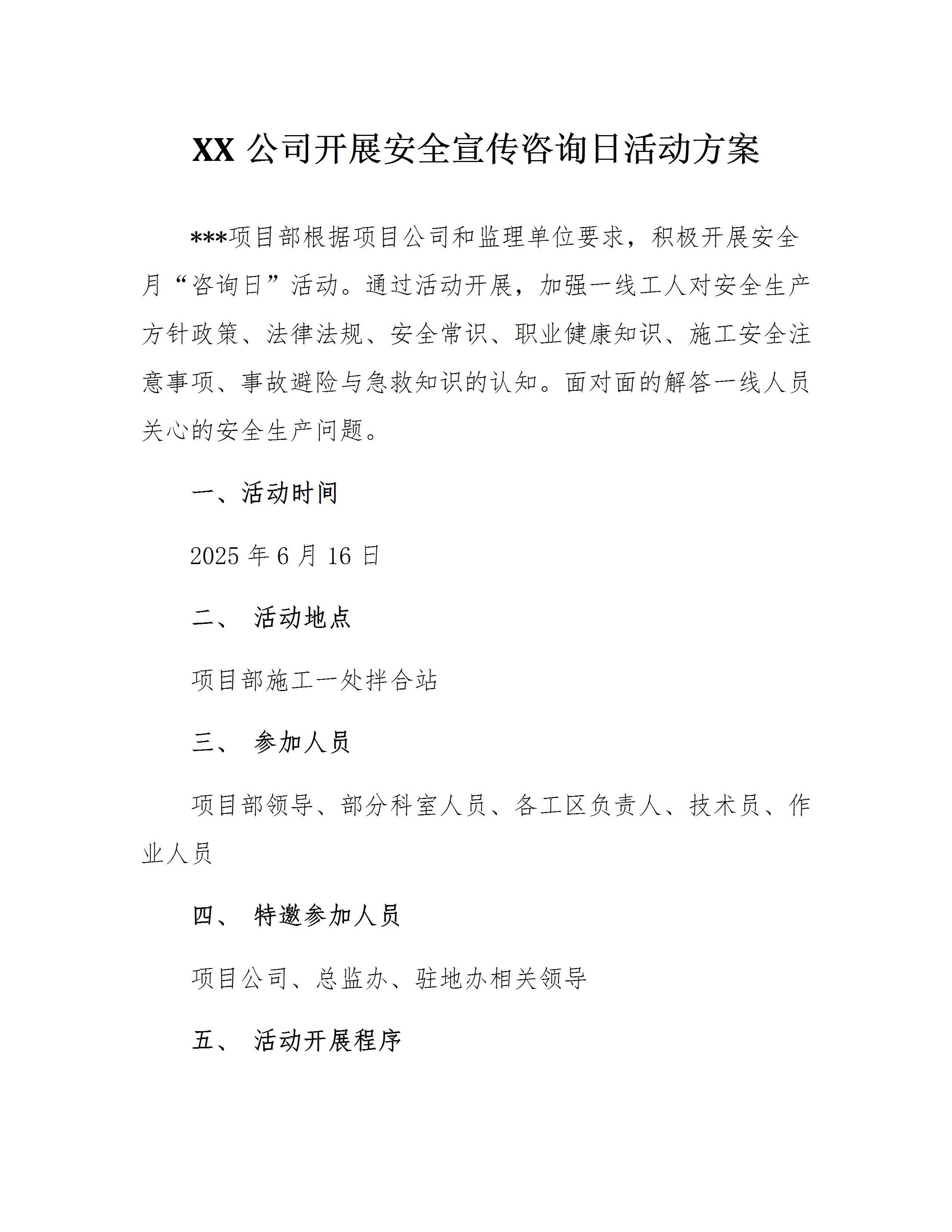 【方案】2025安全宣传咨询日活动方案汇编(16页)