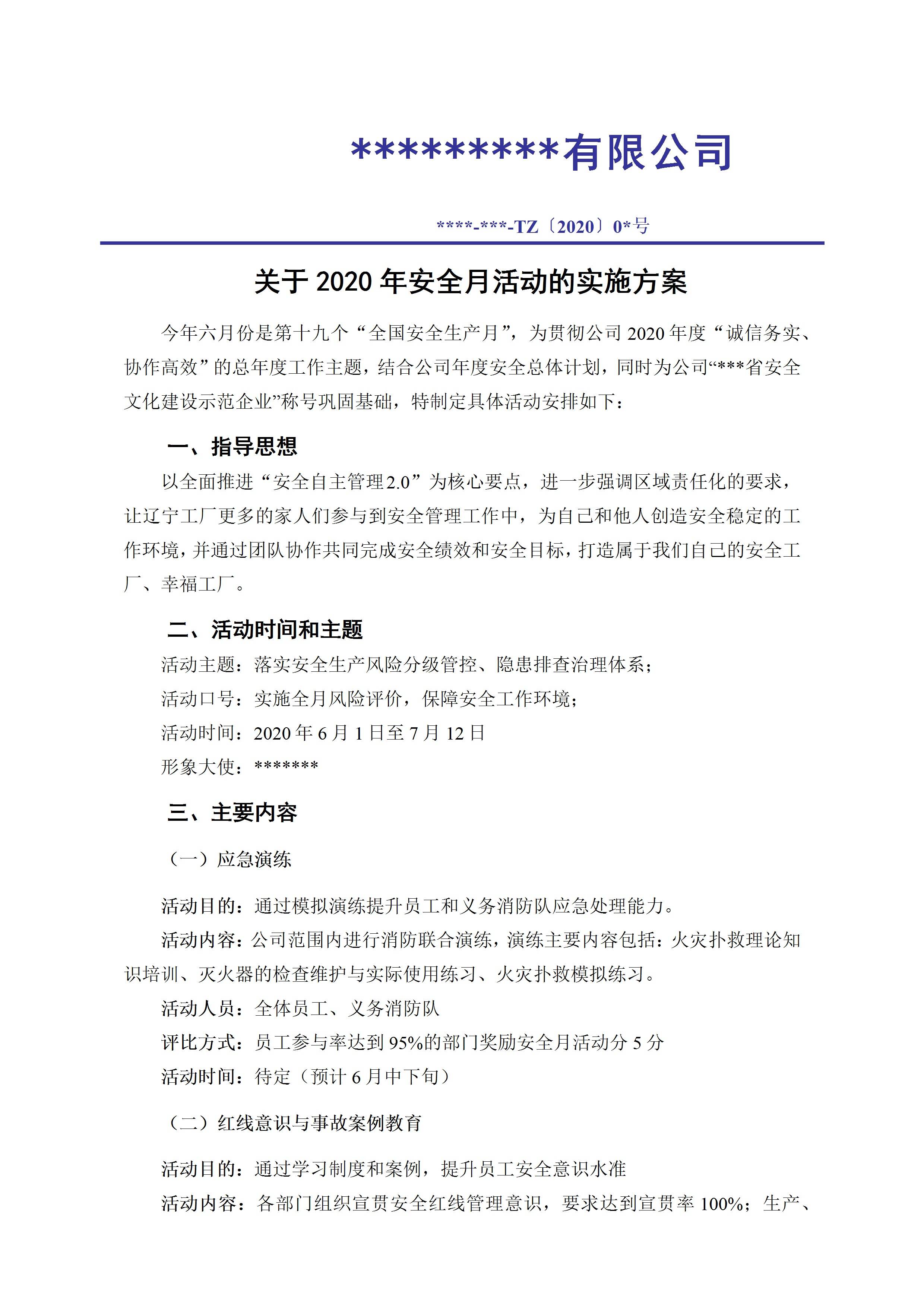 / 2020年安全月活动方案范本5