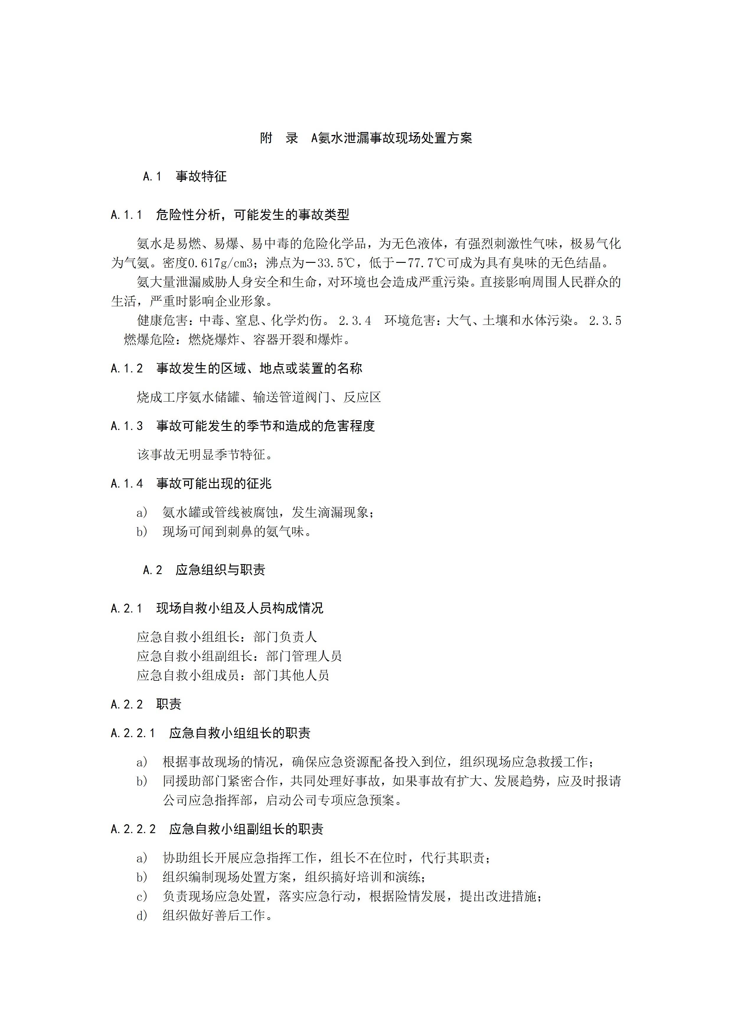 氨水泄漏事故现场处置方案