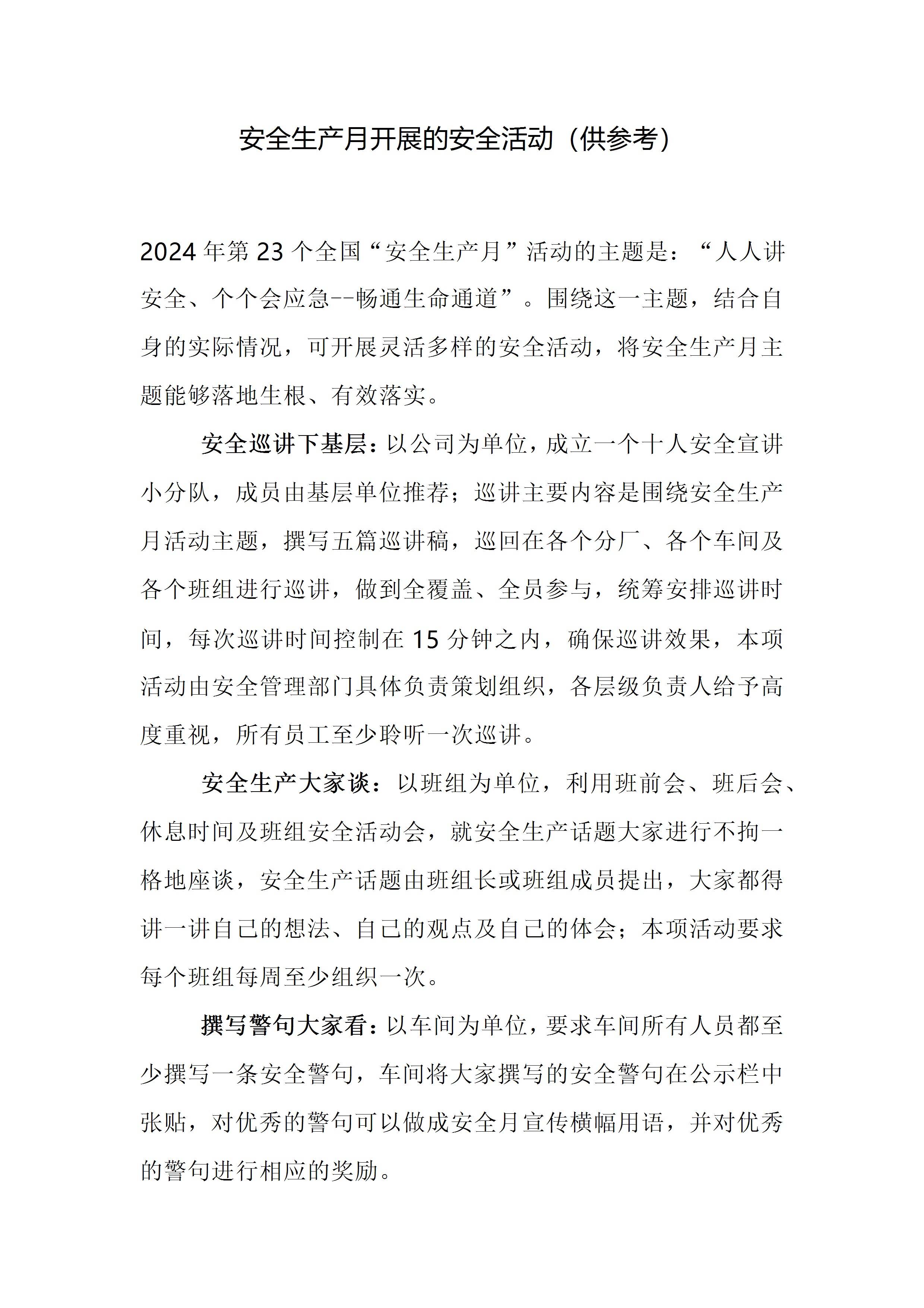/ 安全生产月开展的安全活动(供参考)