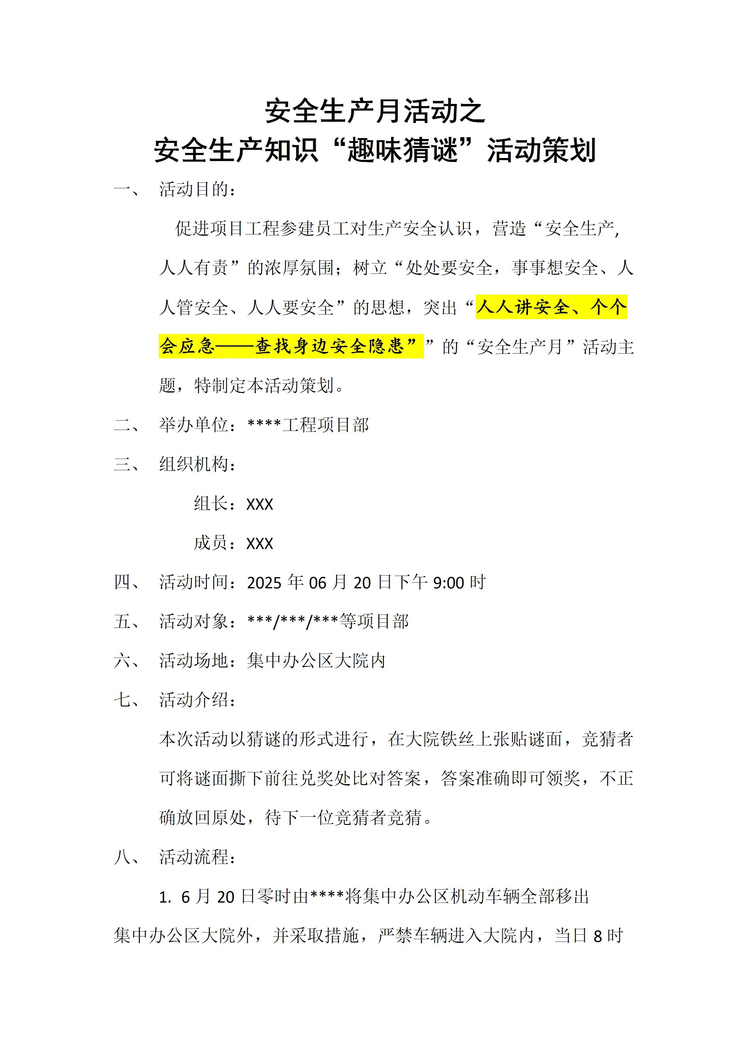 【方案】2025安全月活动之“趣味猜谜”活动方案