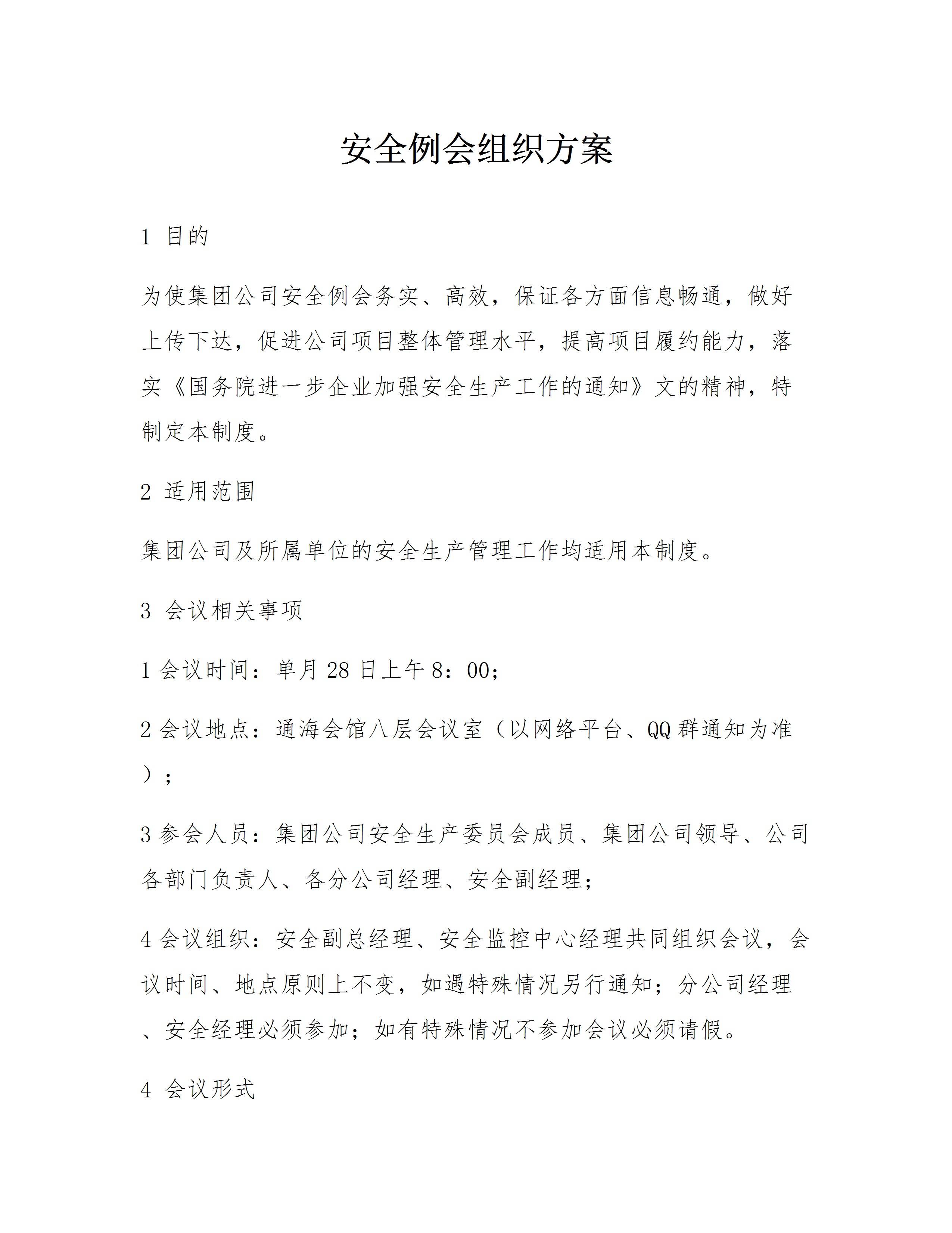 / 【制度方案】XX集团安全例会组织方案(5页)