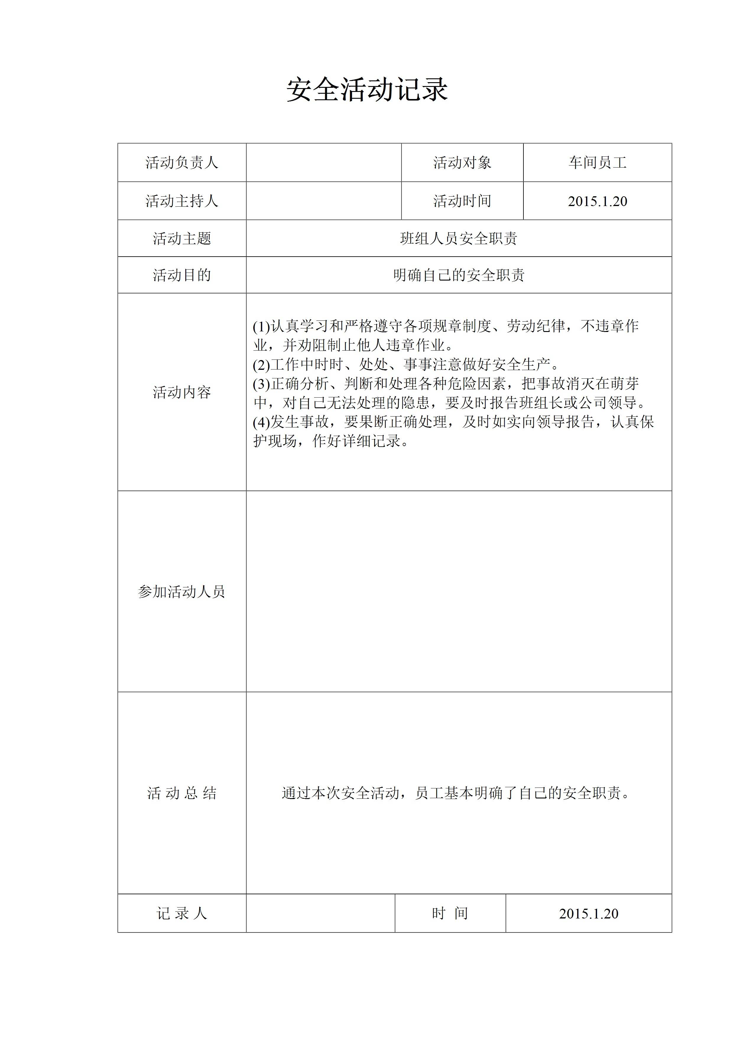 安全活动记录