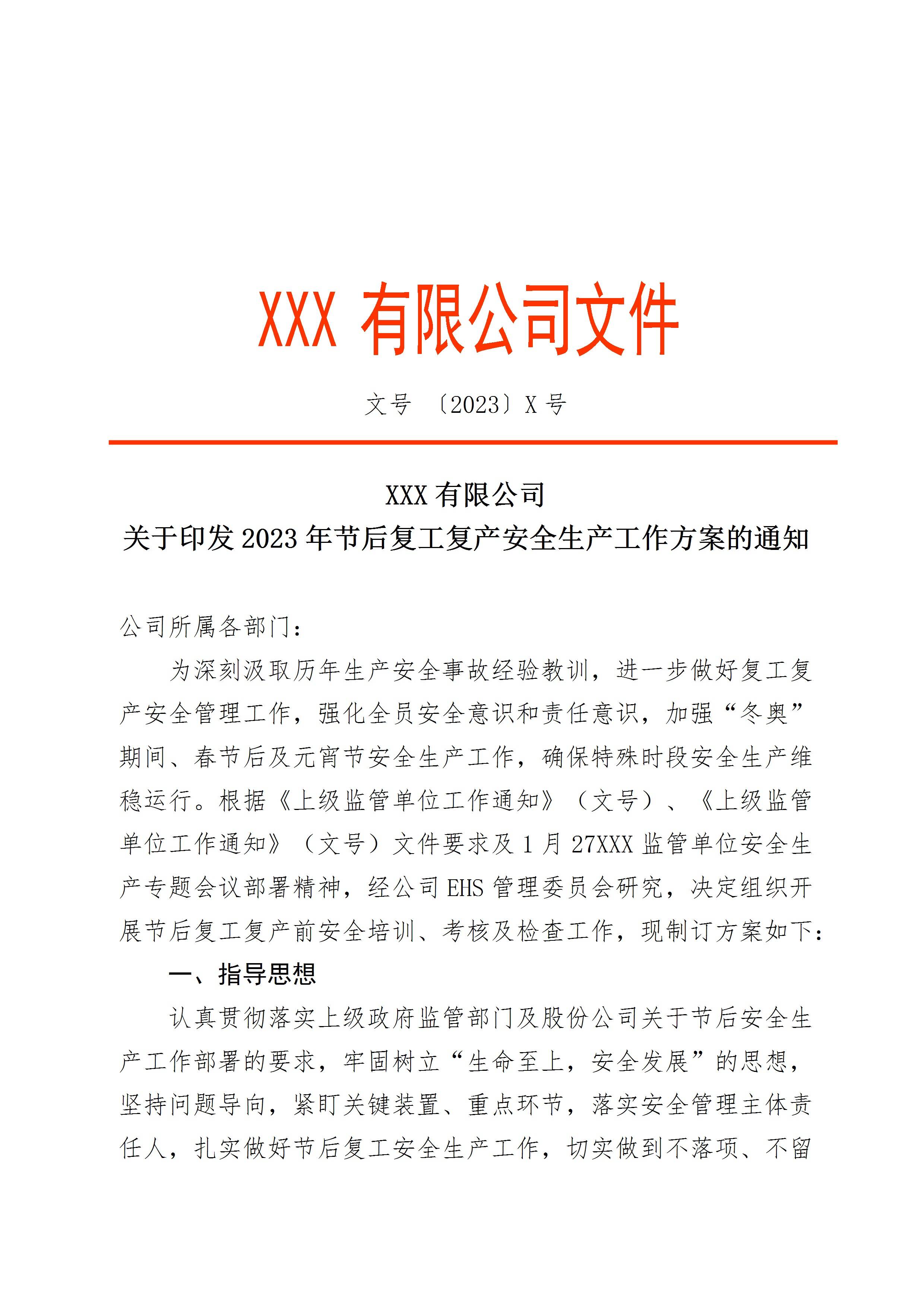 / 2023企业通用复工复产工作方案