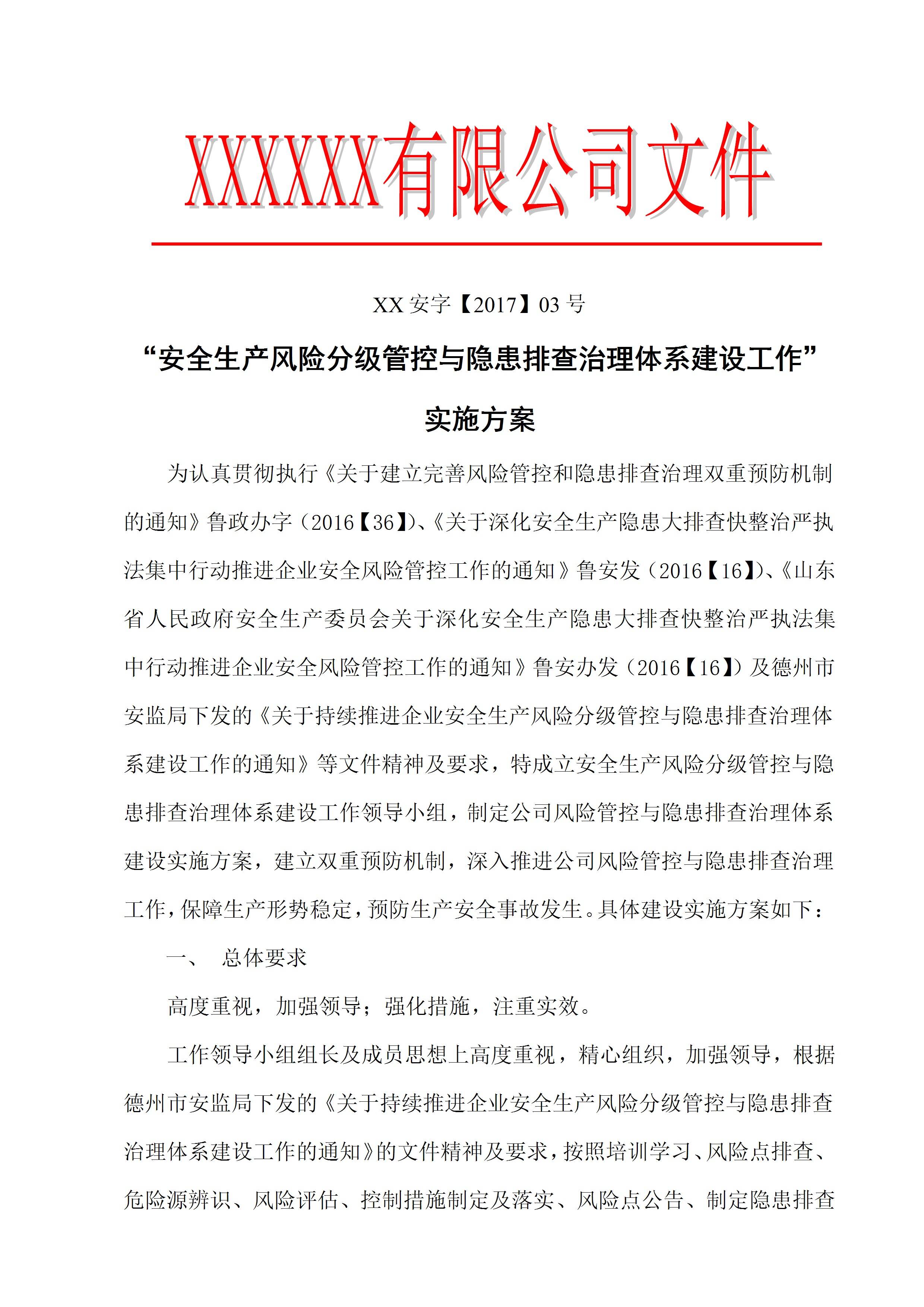 / 风险管控与隐患排查治理体系建设方案