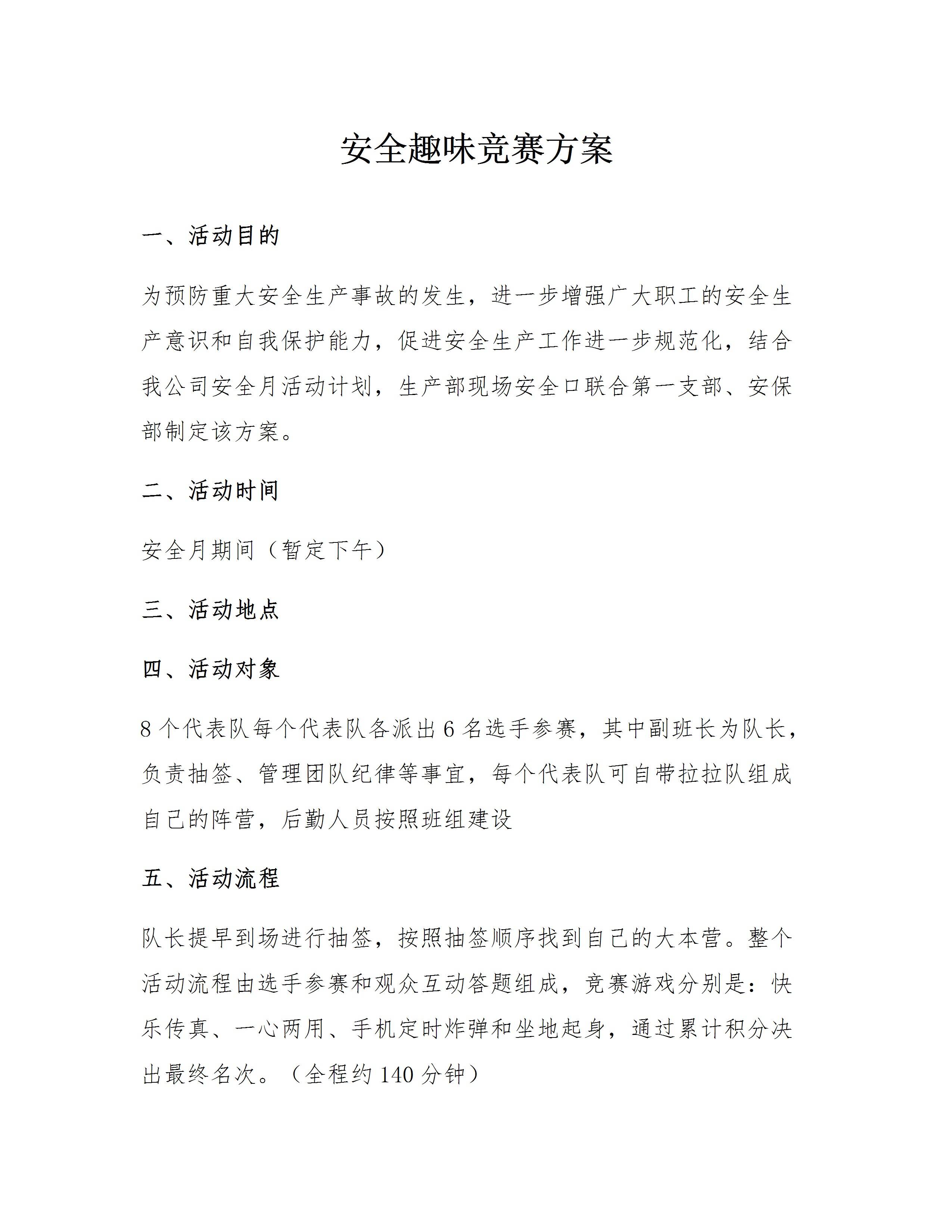 / 【方案】2023安全月活动之“安全趣味竞赛活动”方案(8页)