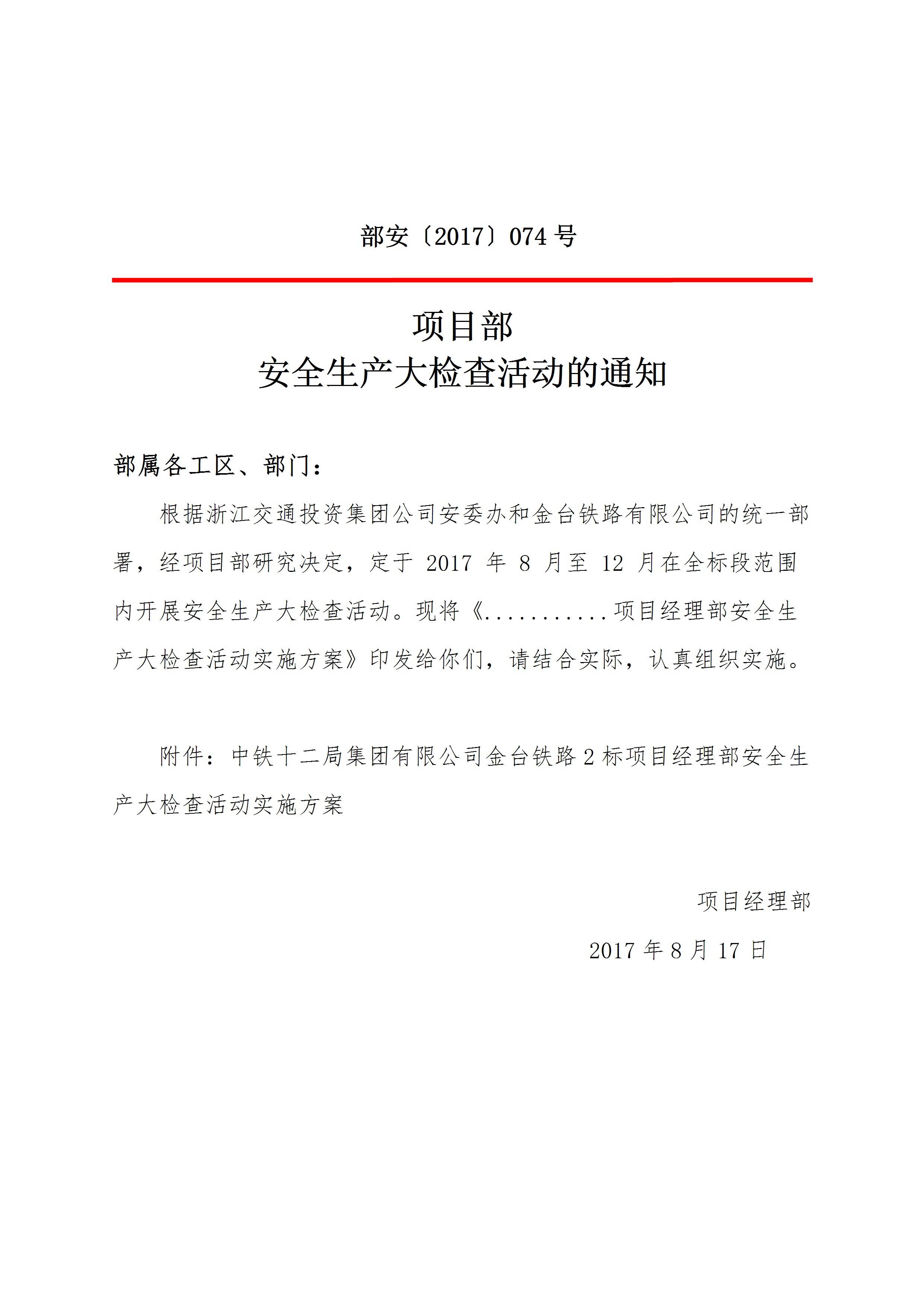 项目部安全生产大检查活动的通知