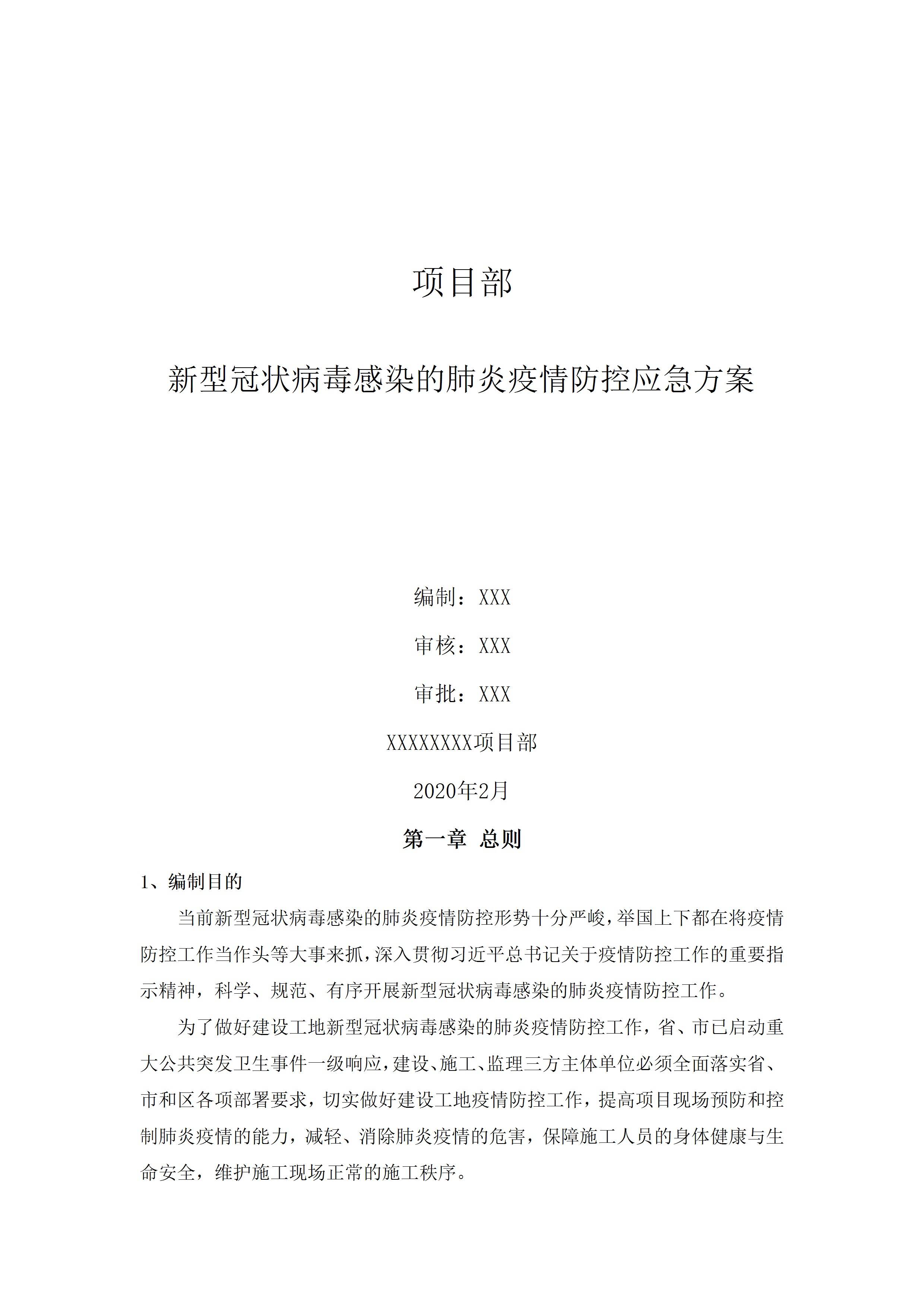 / 施工项目部新型冠状病毒感染的肺炎疫情防控应急方案
