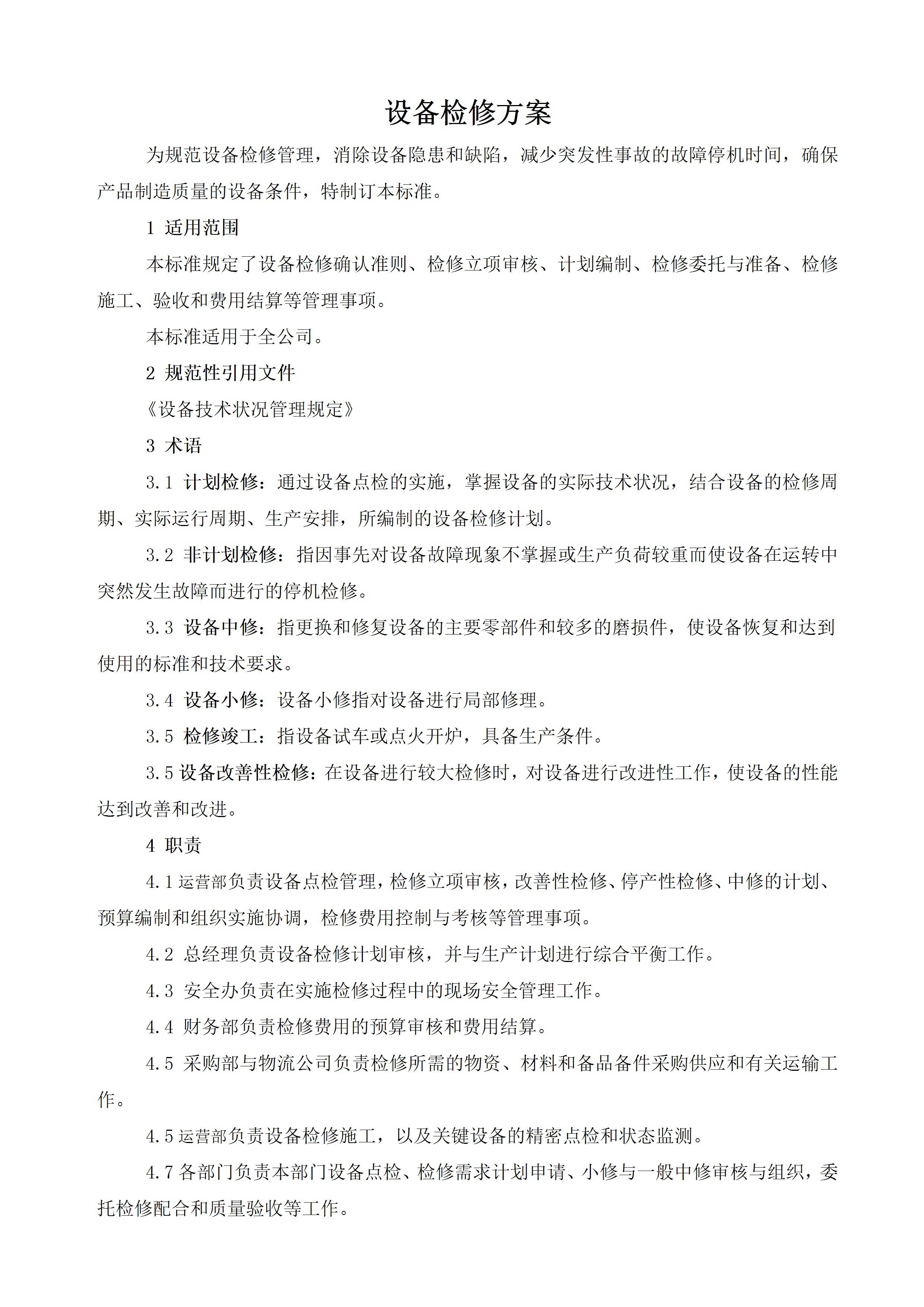 设备检修方案