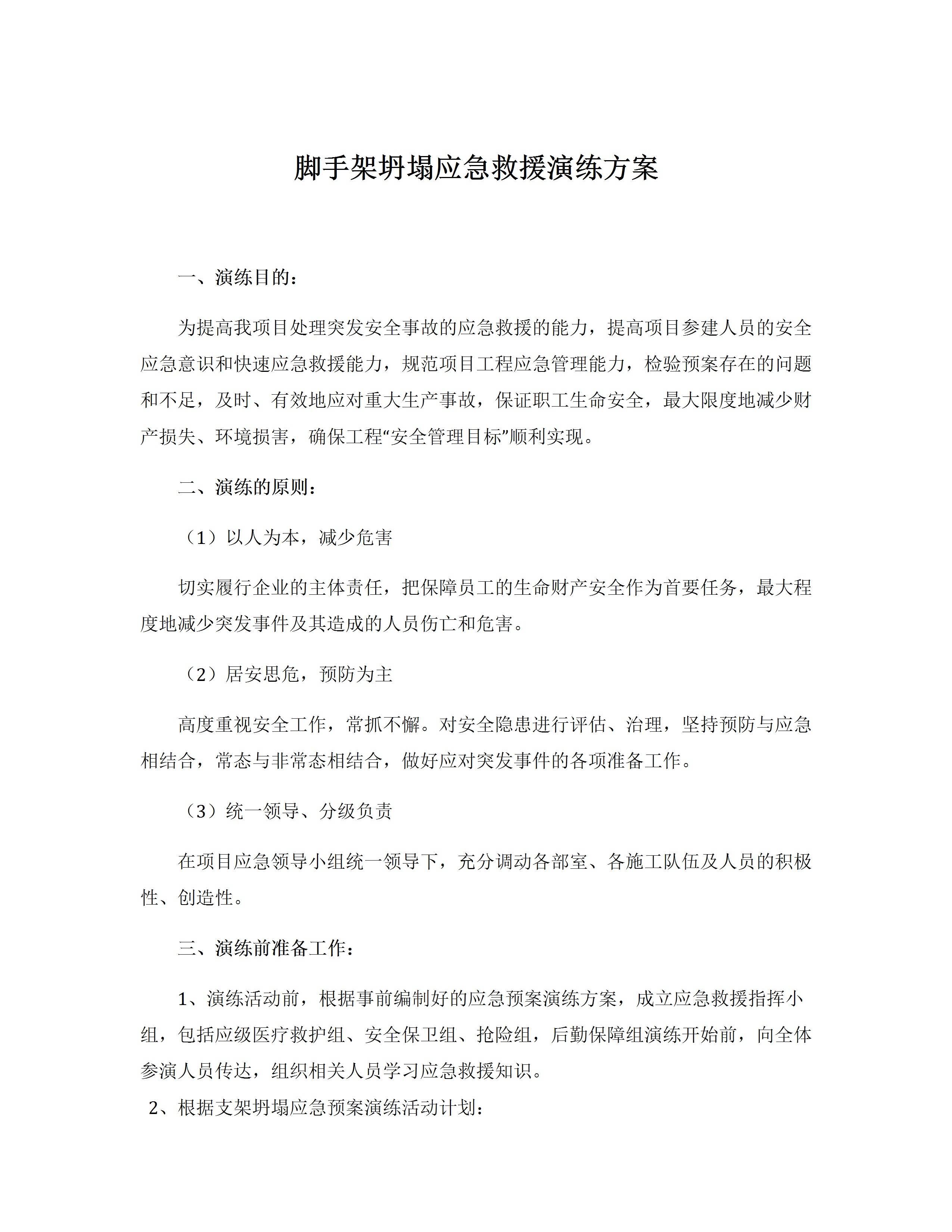/ 【演练方案】脚手架坍塌应急救援演练方案8页