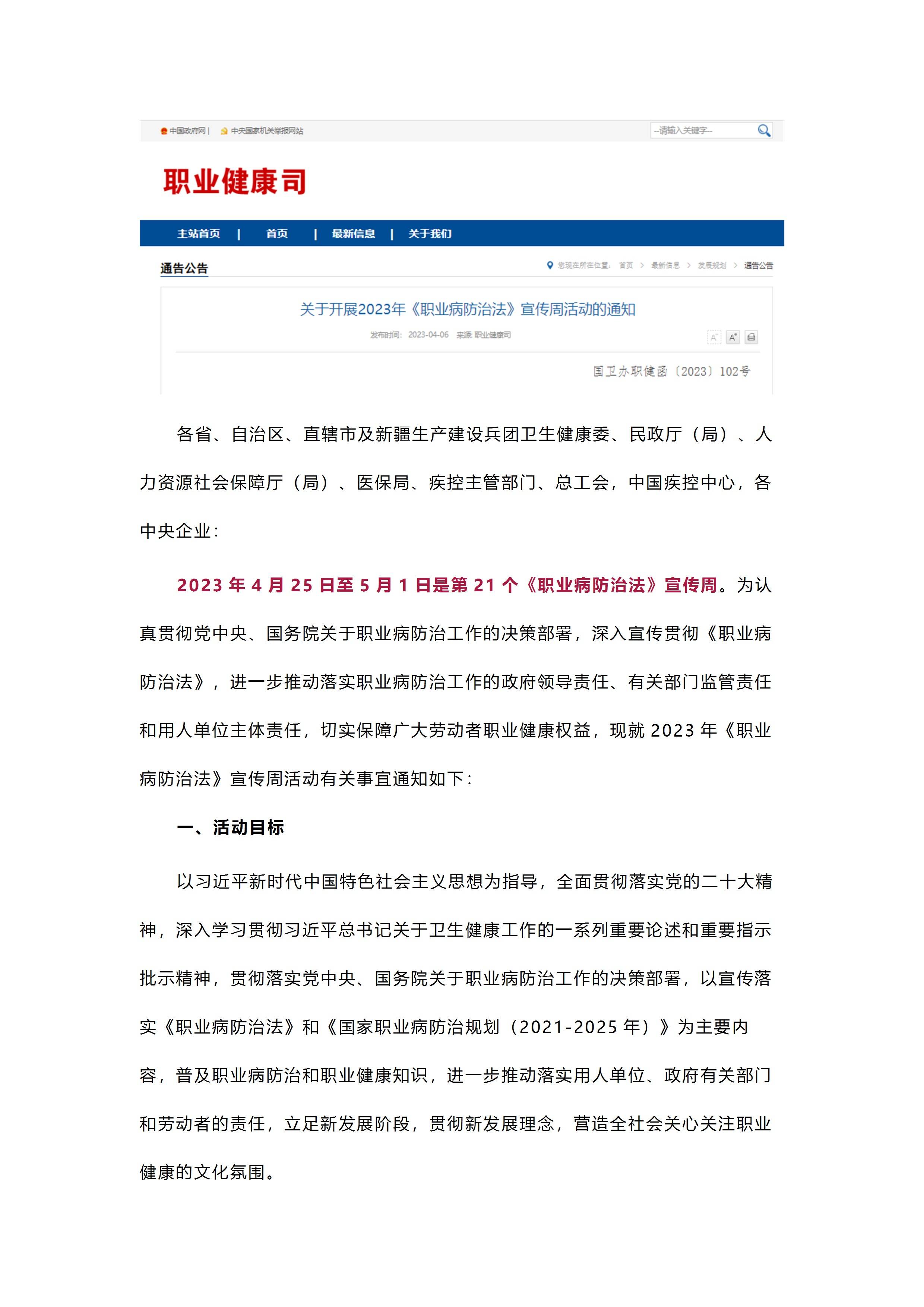 主题已定 关于开展2023年《职业病防治法》宣传周活动的通知