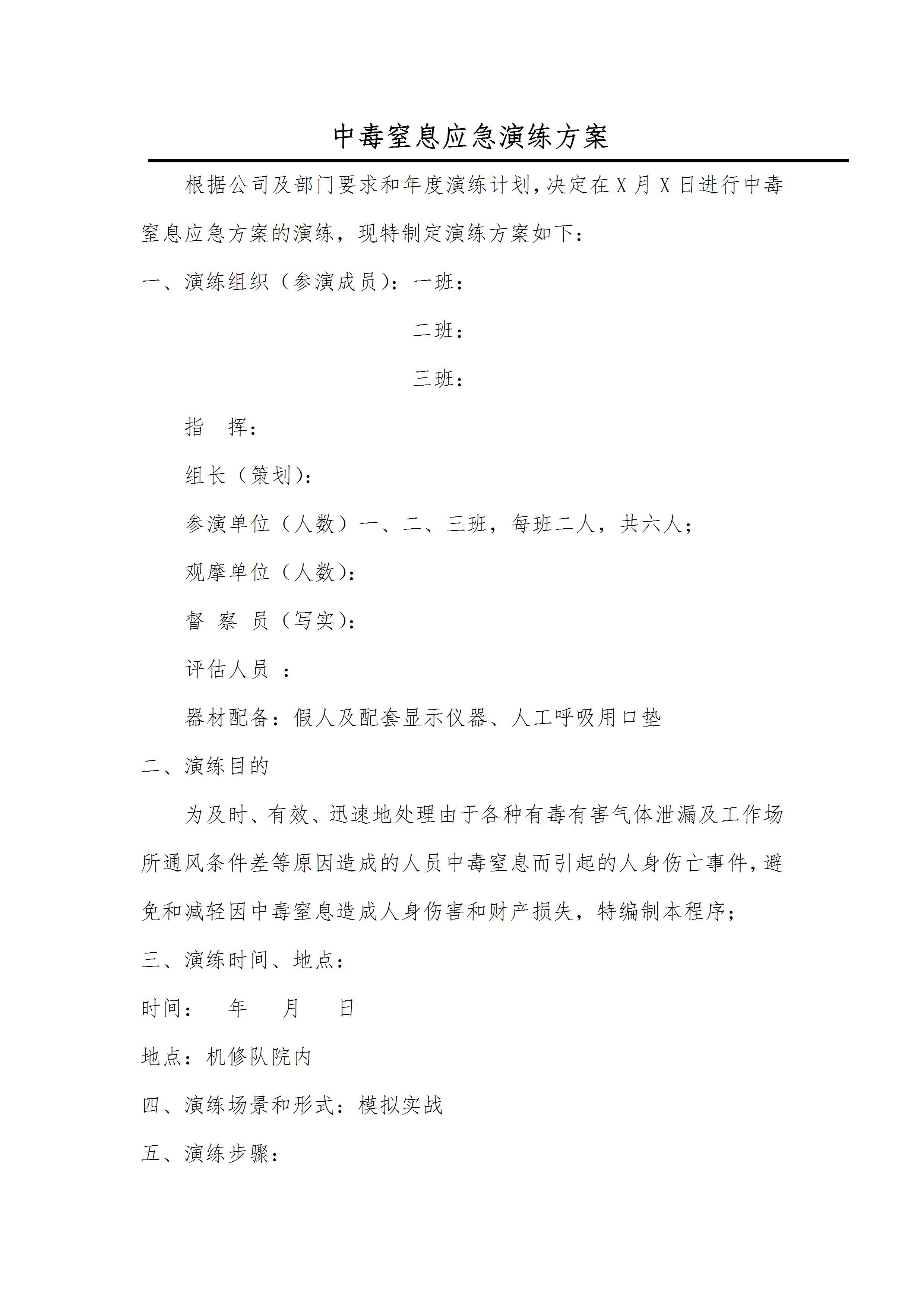 / 【演练方案】中毒窒息应急演练方案6页