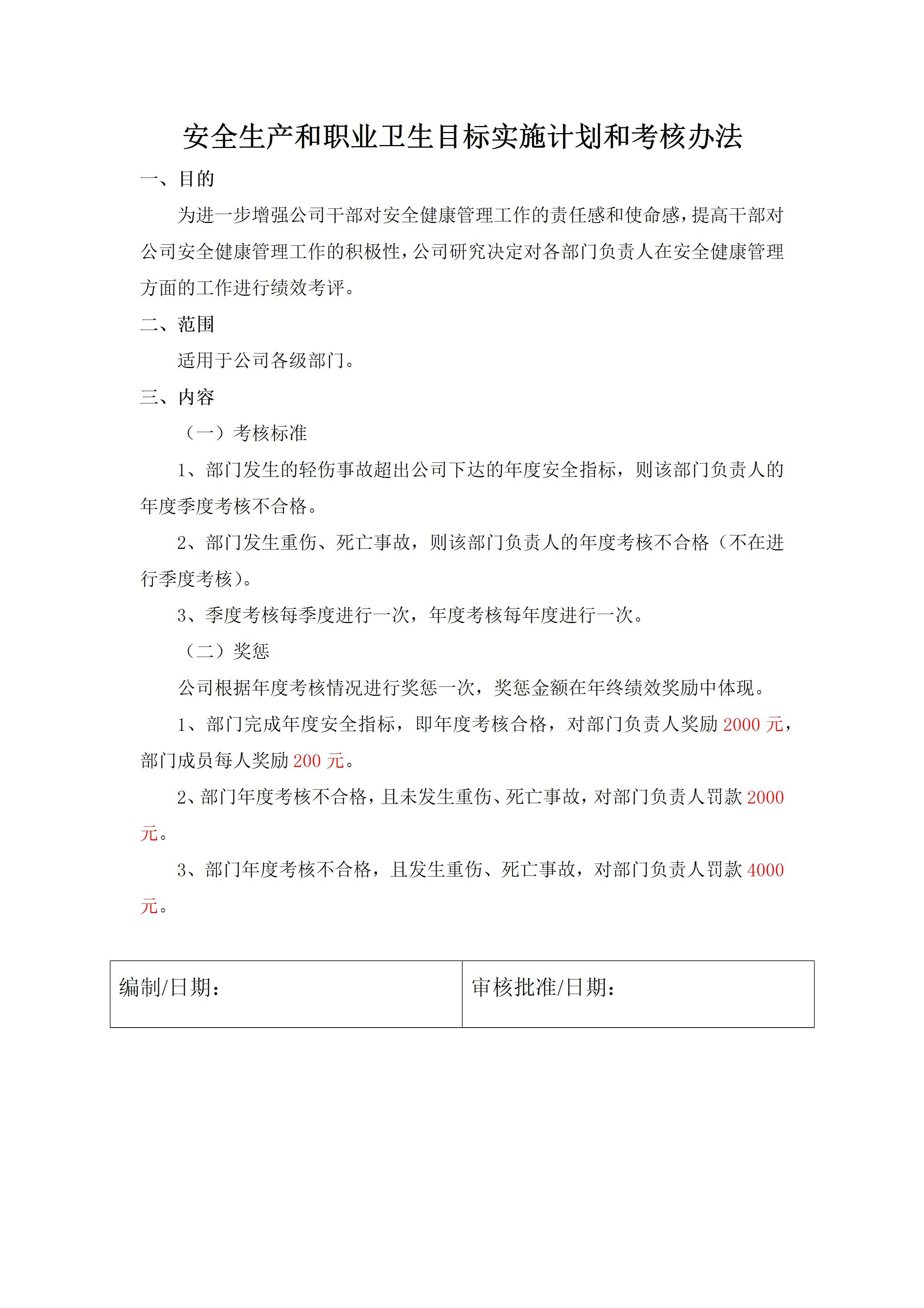 / 安全生产和职业卫生目标实施计划和考核办法