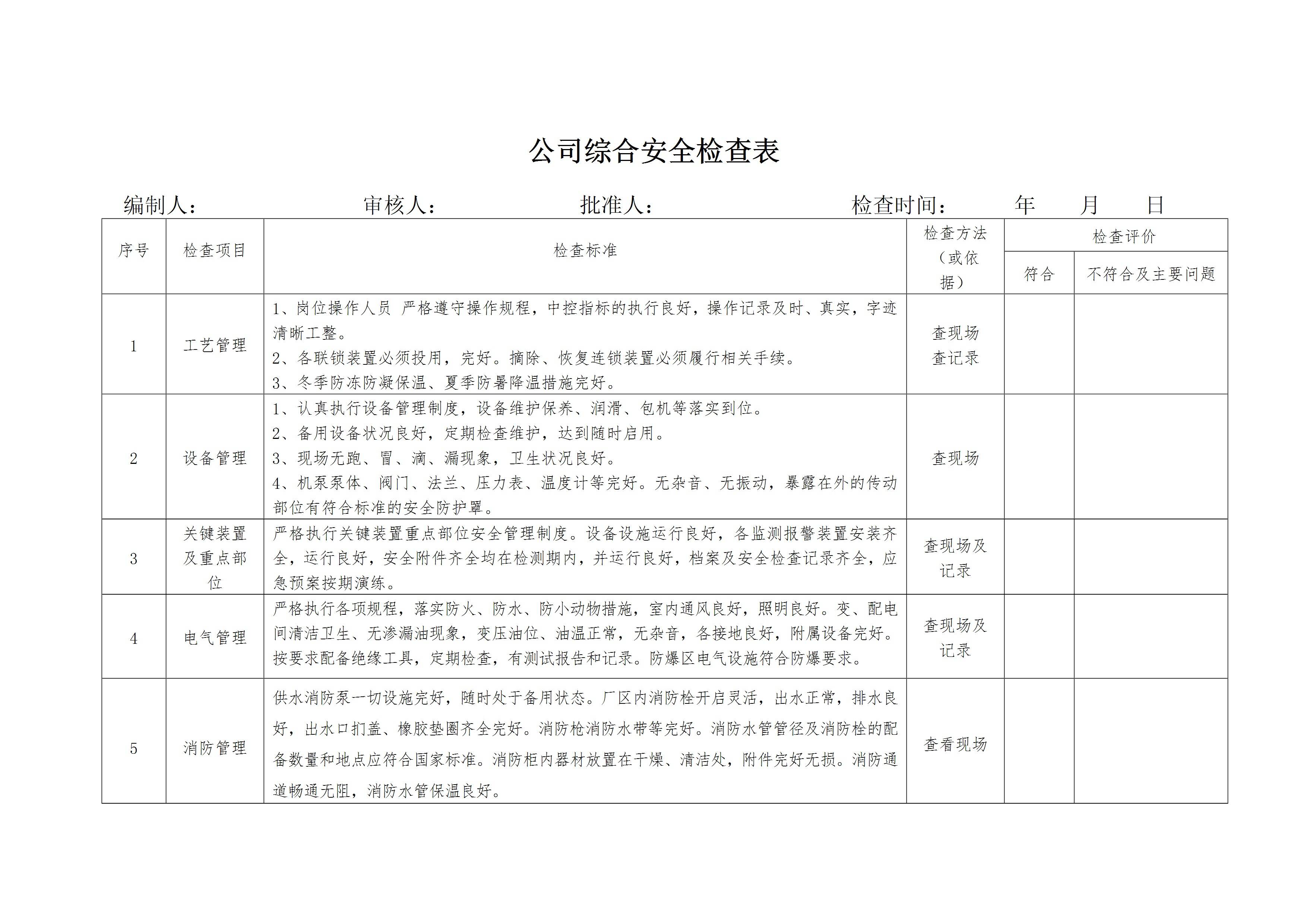 / 公司厂级综合安全检查表(按年度计划落实)