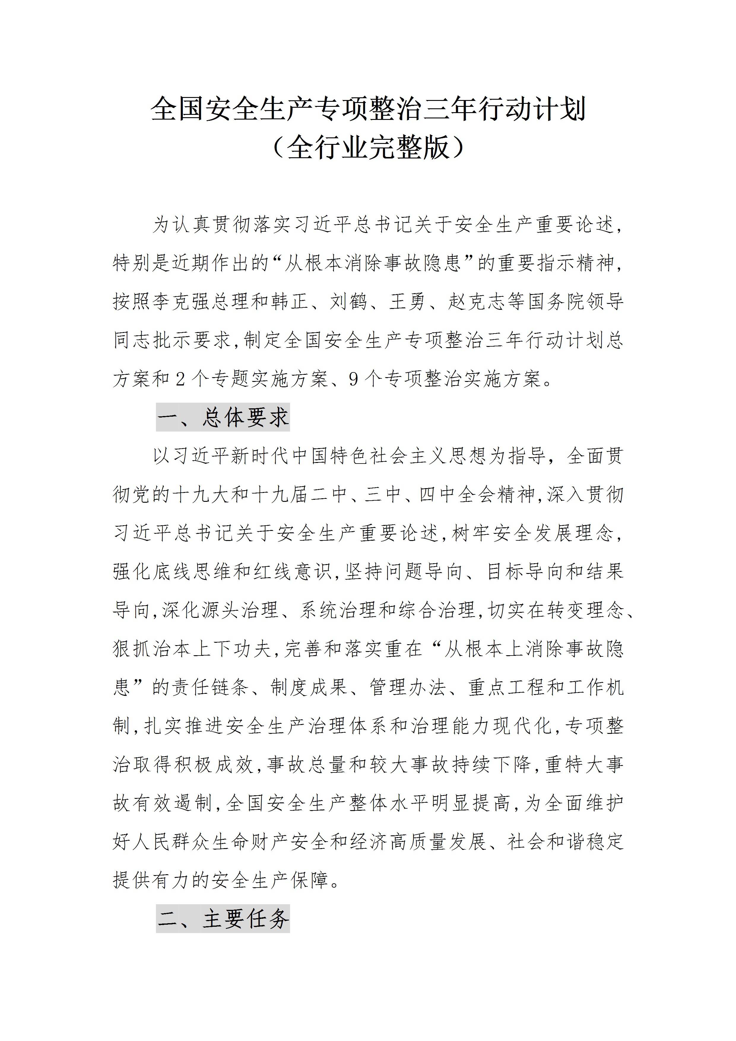 安委20203号文《全国安全生产专项整治三年行动计划》九大行业完整版101页