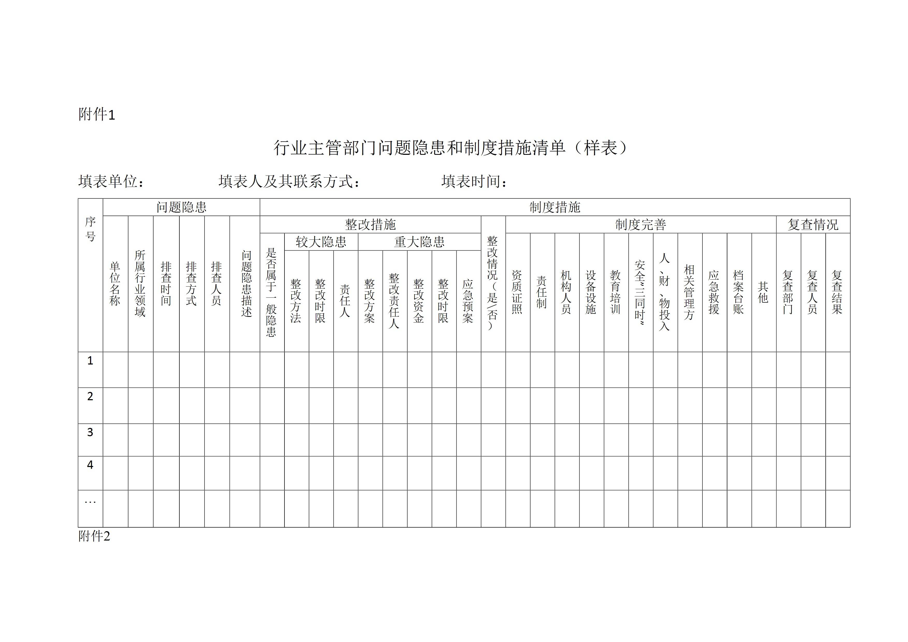 / 企业三年行动计划“问题隐患和制度措施两个清单”(样表)