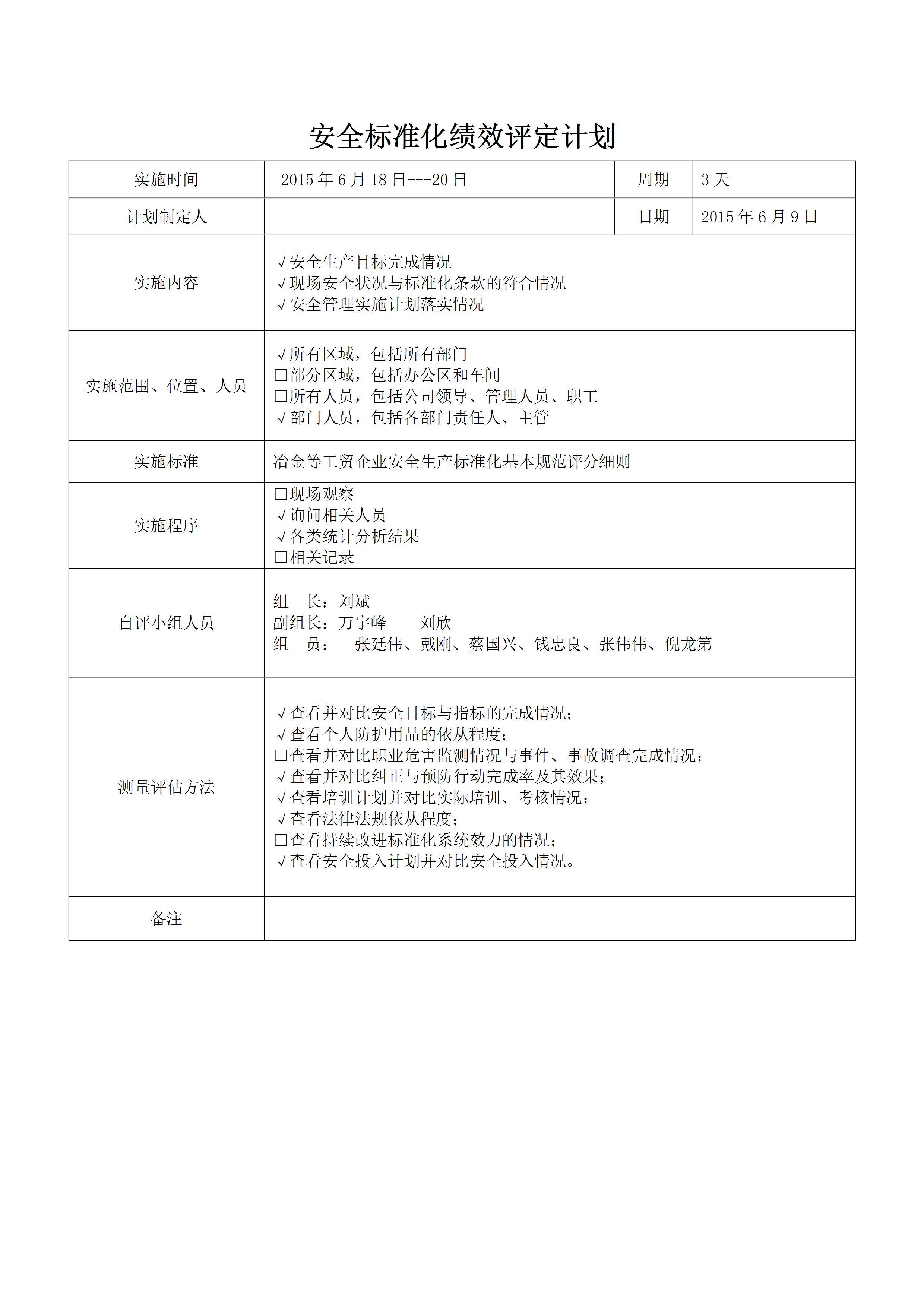 安全标准化绩效评定计划