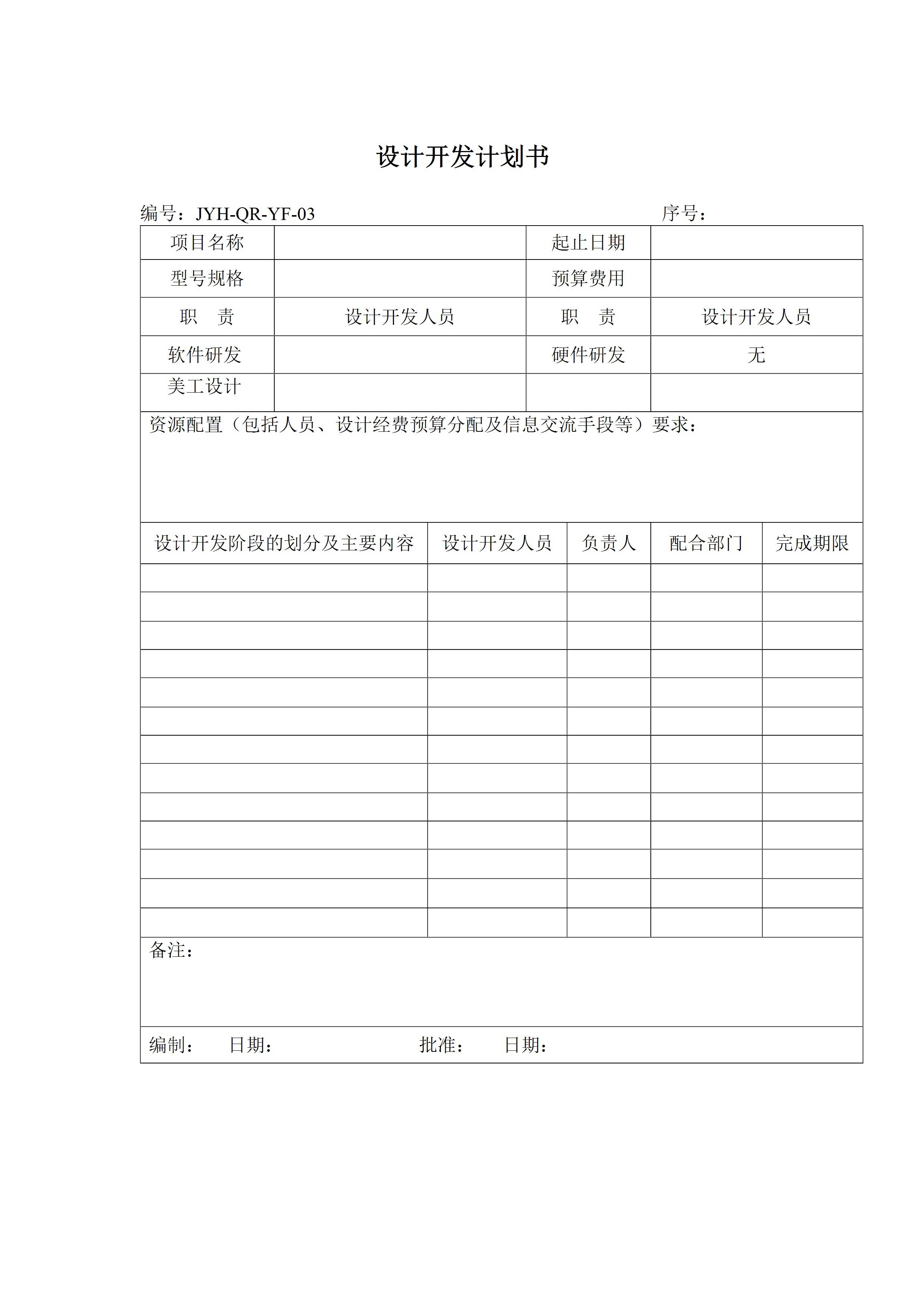JYH-QR-YF-001设计开发计划书