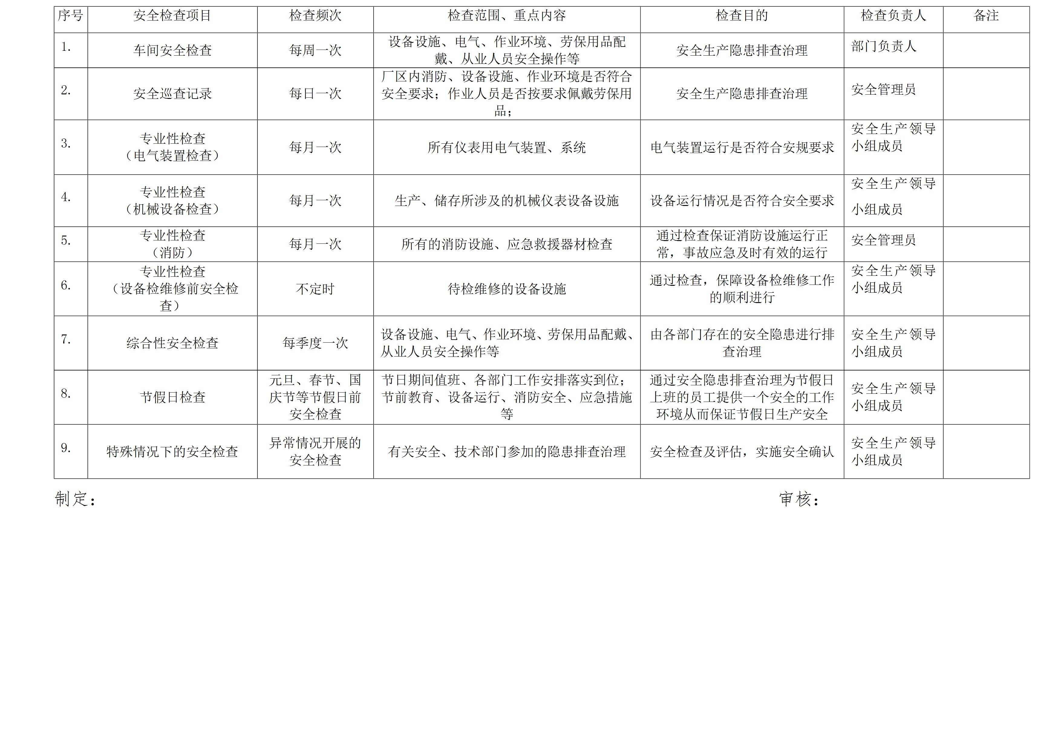 年度安全检查计划表