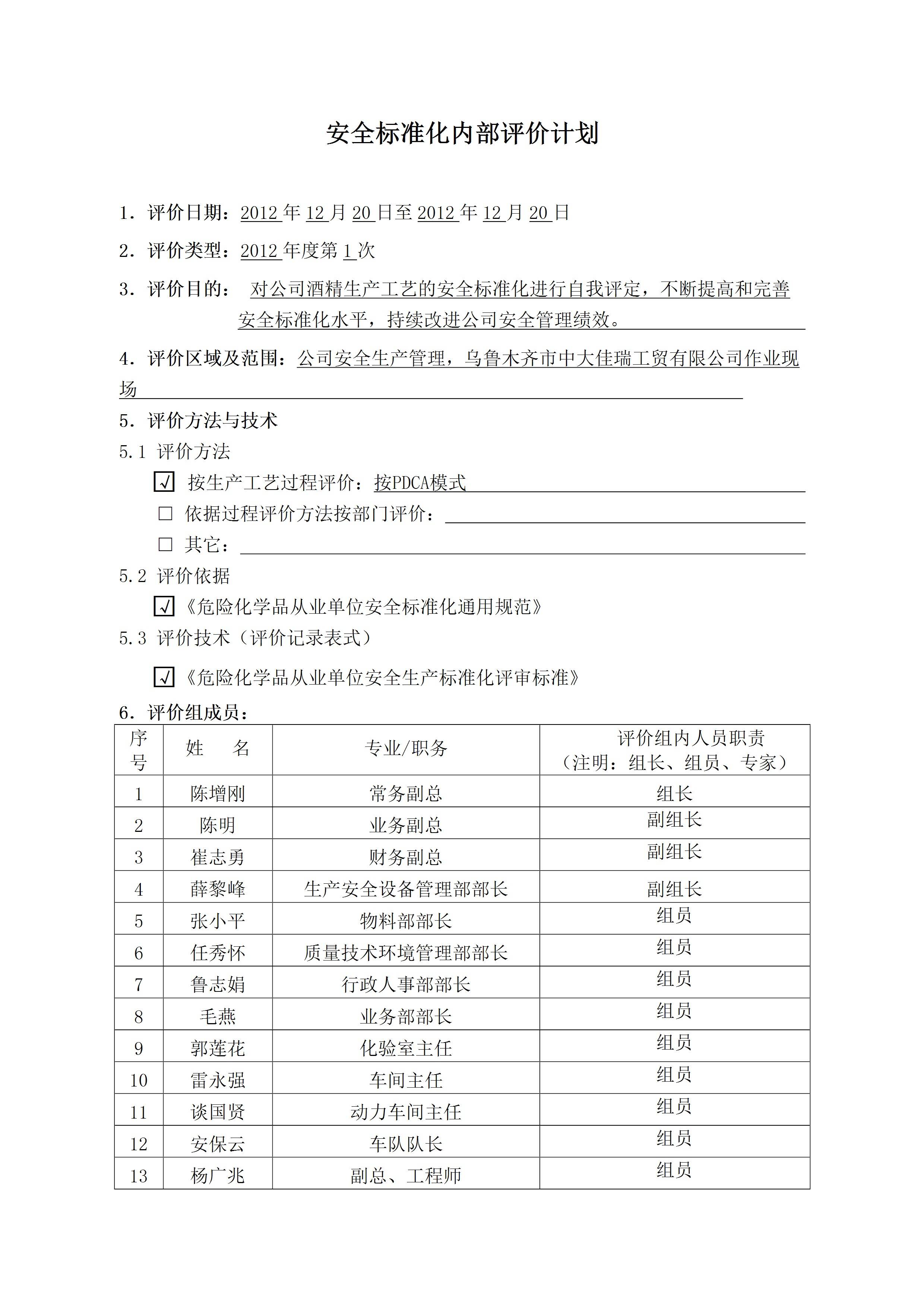 安全标准化系统内部评价计划(参考)