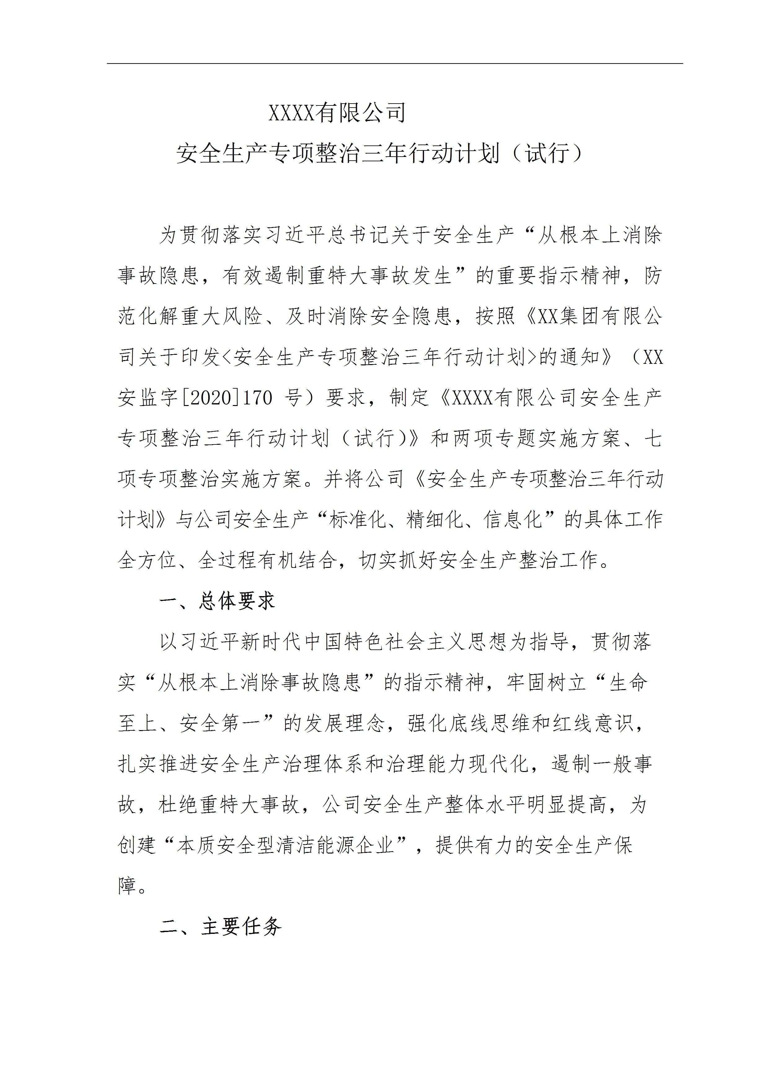 / 公司《安全生产专项整治三年行动计划》2个专题方案7个实施方案