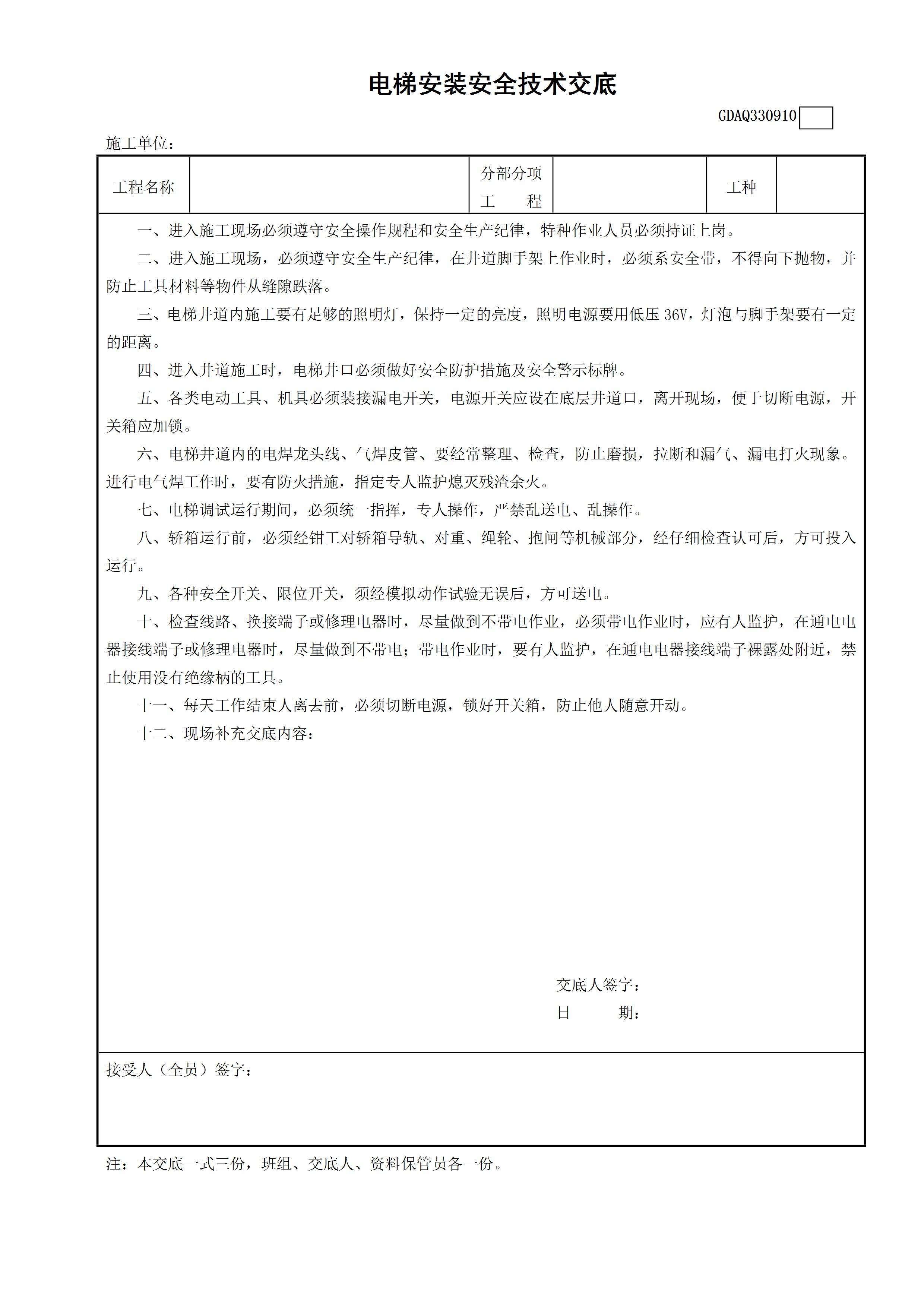 / 电梯安装安全技术交底GDAQ330910