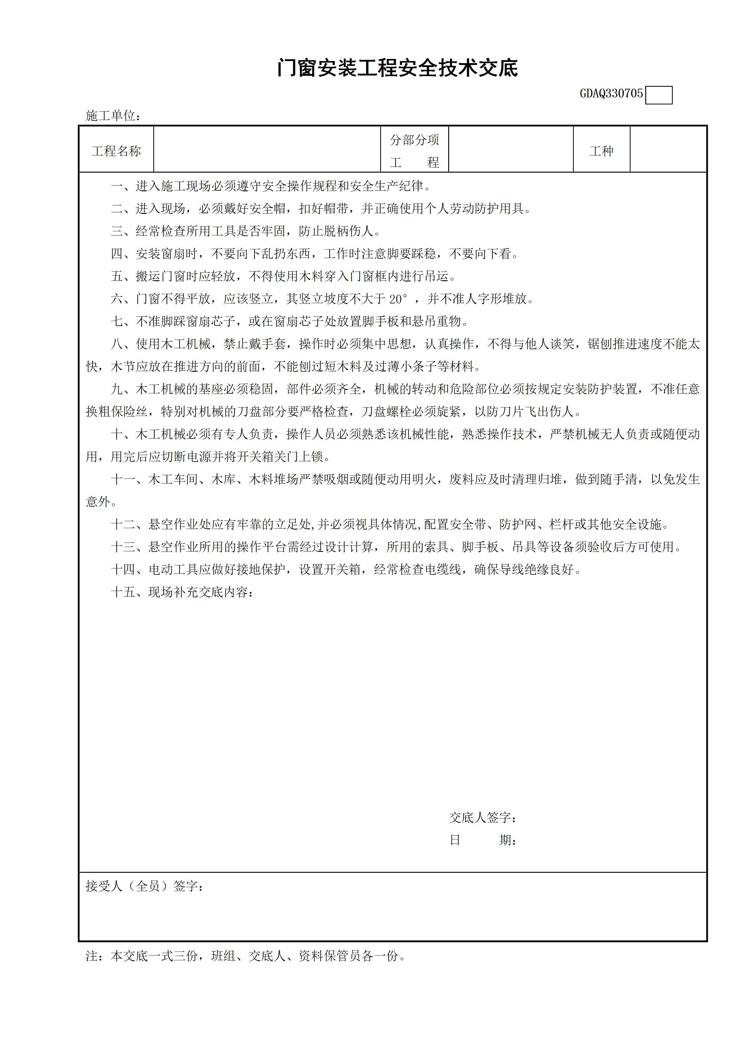 / 门窗安装工程安全技术交底GDAQ330705