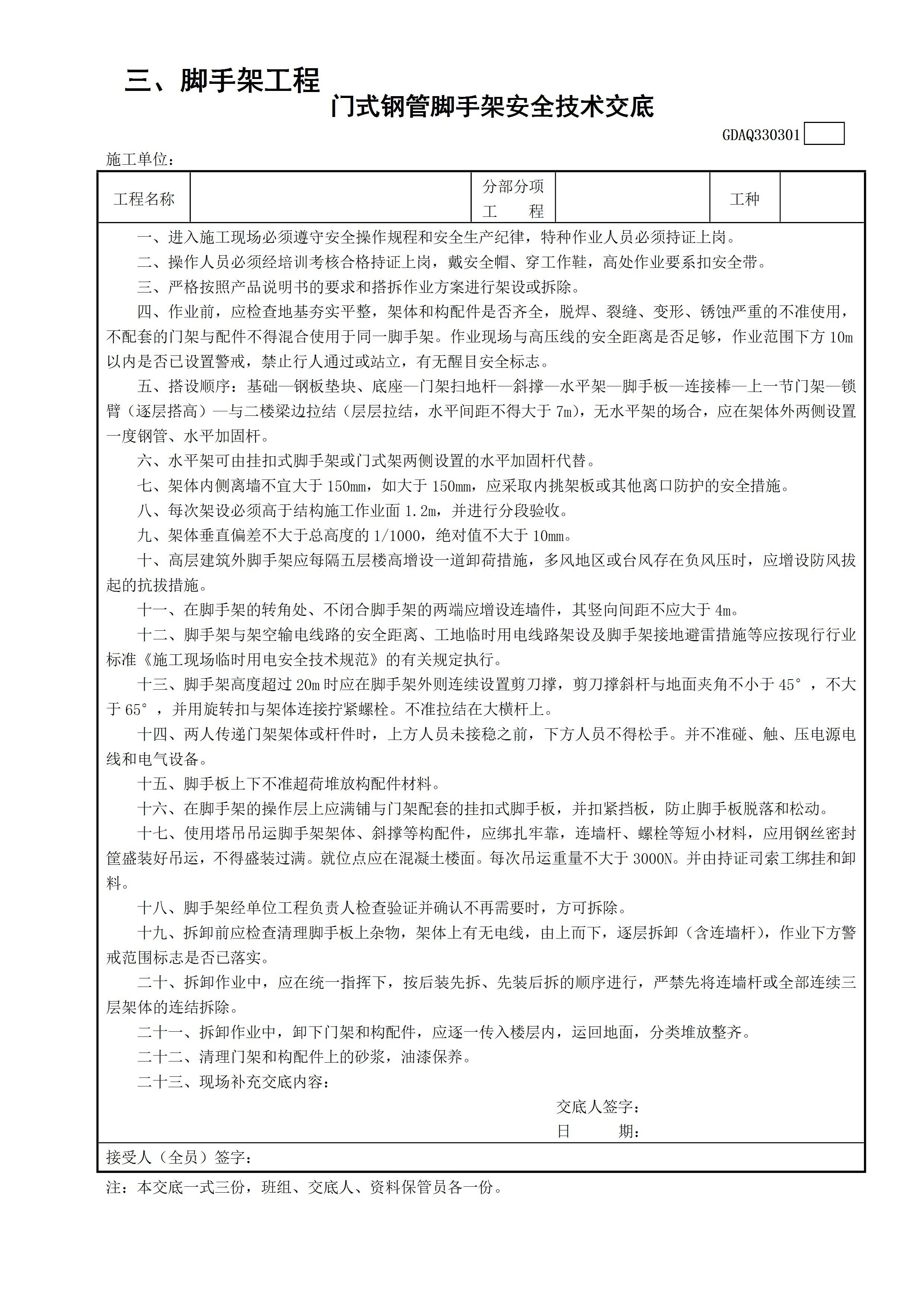 / 门型钢管外脚手架安全技术交底GDAQ330301