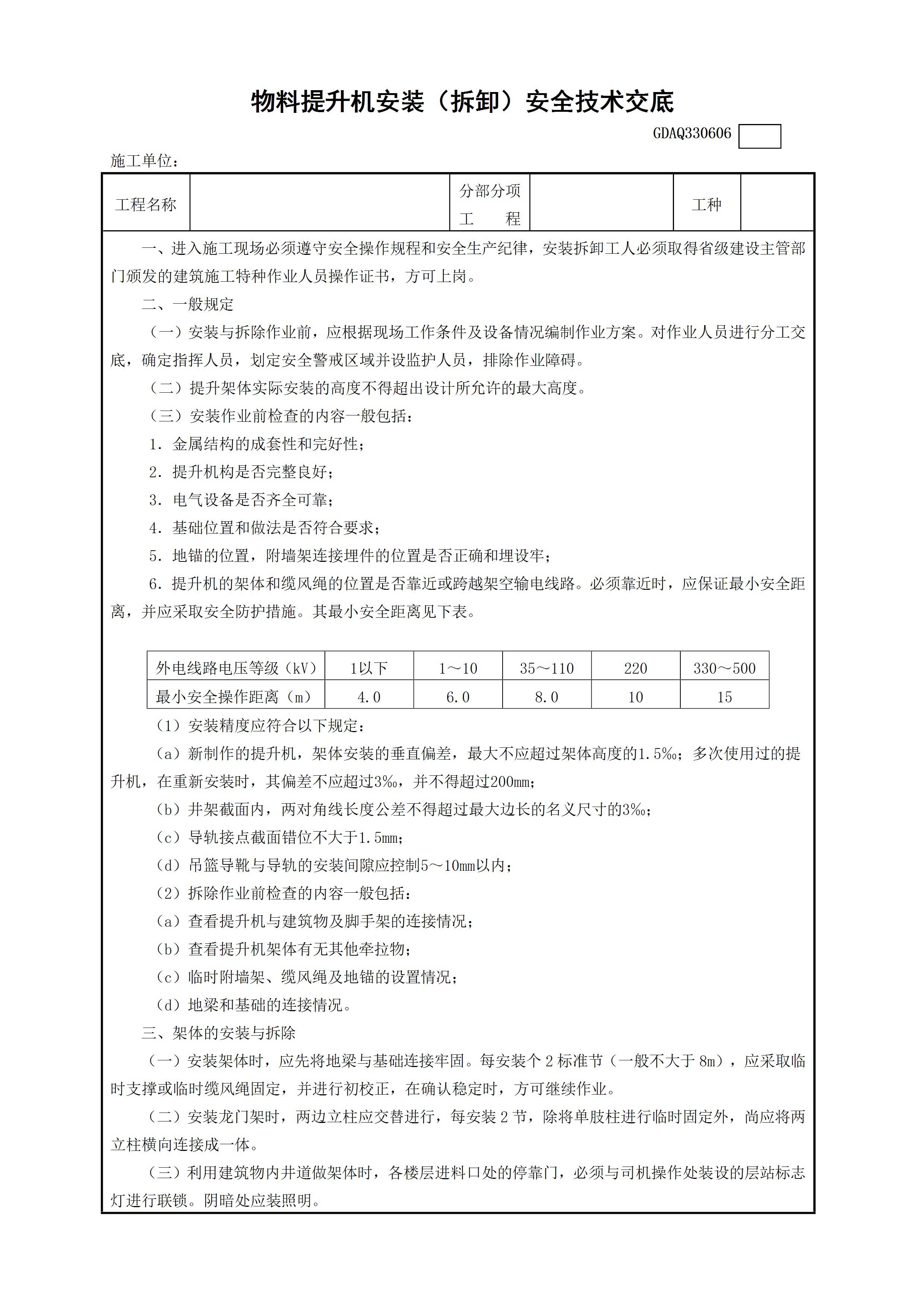 / 物料提升机安装(拆卸)安全技术交底GDAQ330606