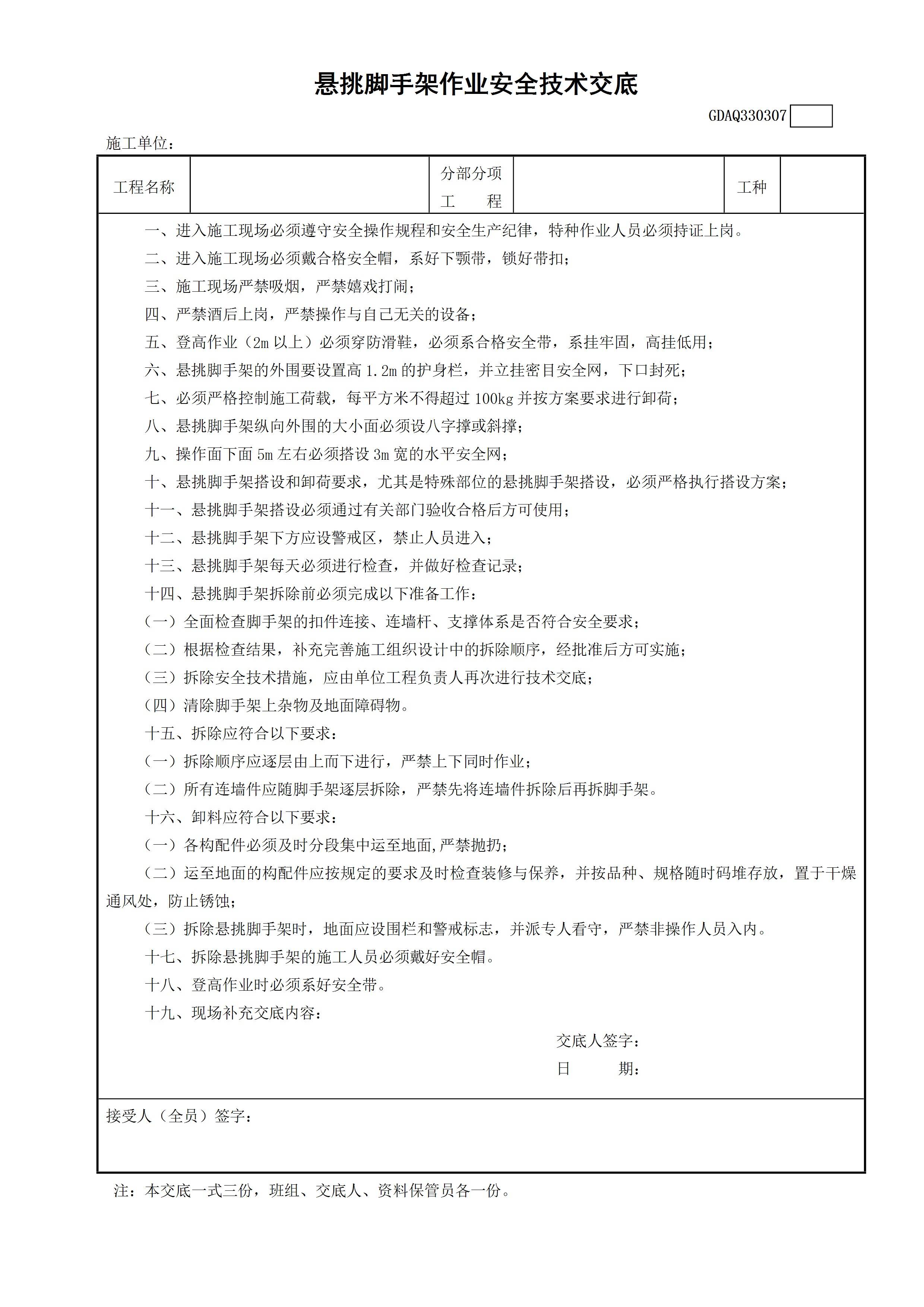 / 悬挑脚手架作业安全技术交底GDAQ330307