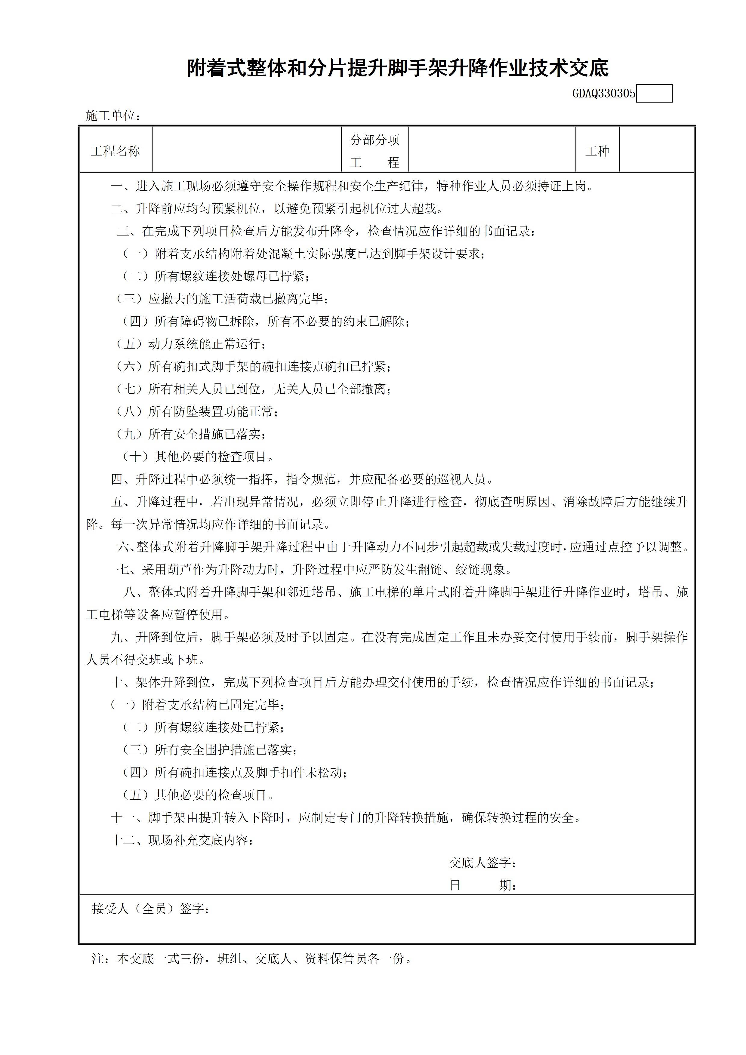 / 整体和分片提升脚手架升降作业技术交底GDAQ3303