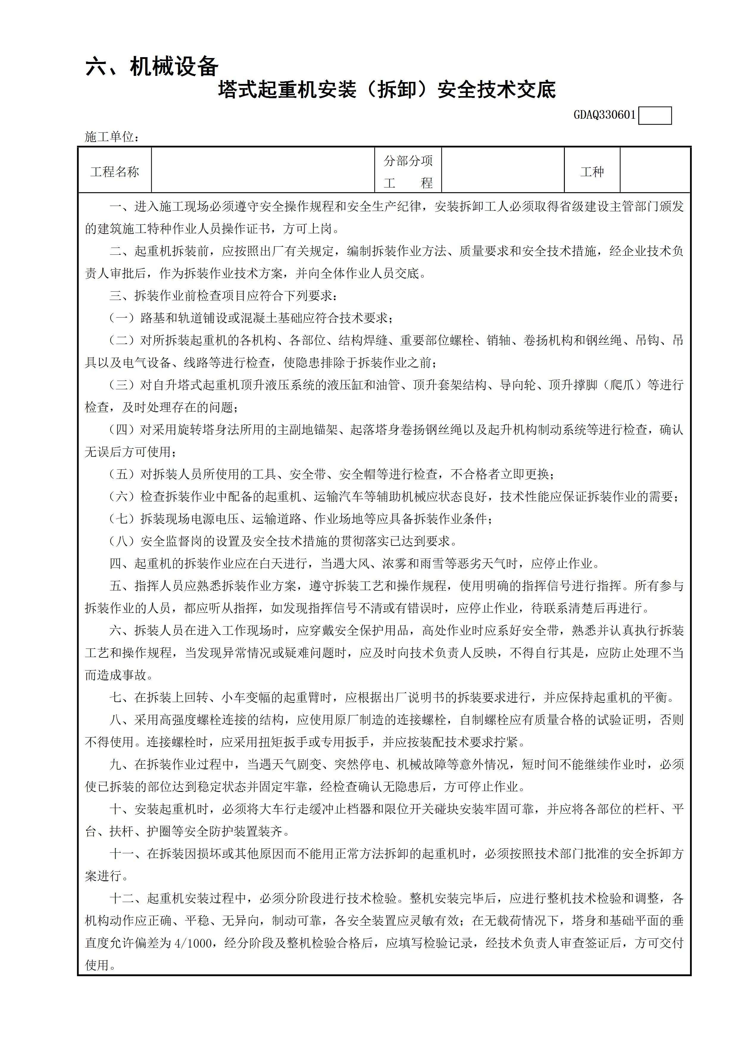 / 塔式起重机安装(拆卸)安全技术交底GDAQ330601