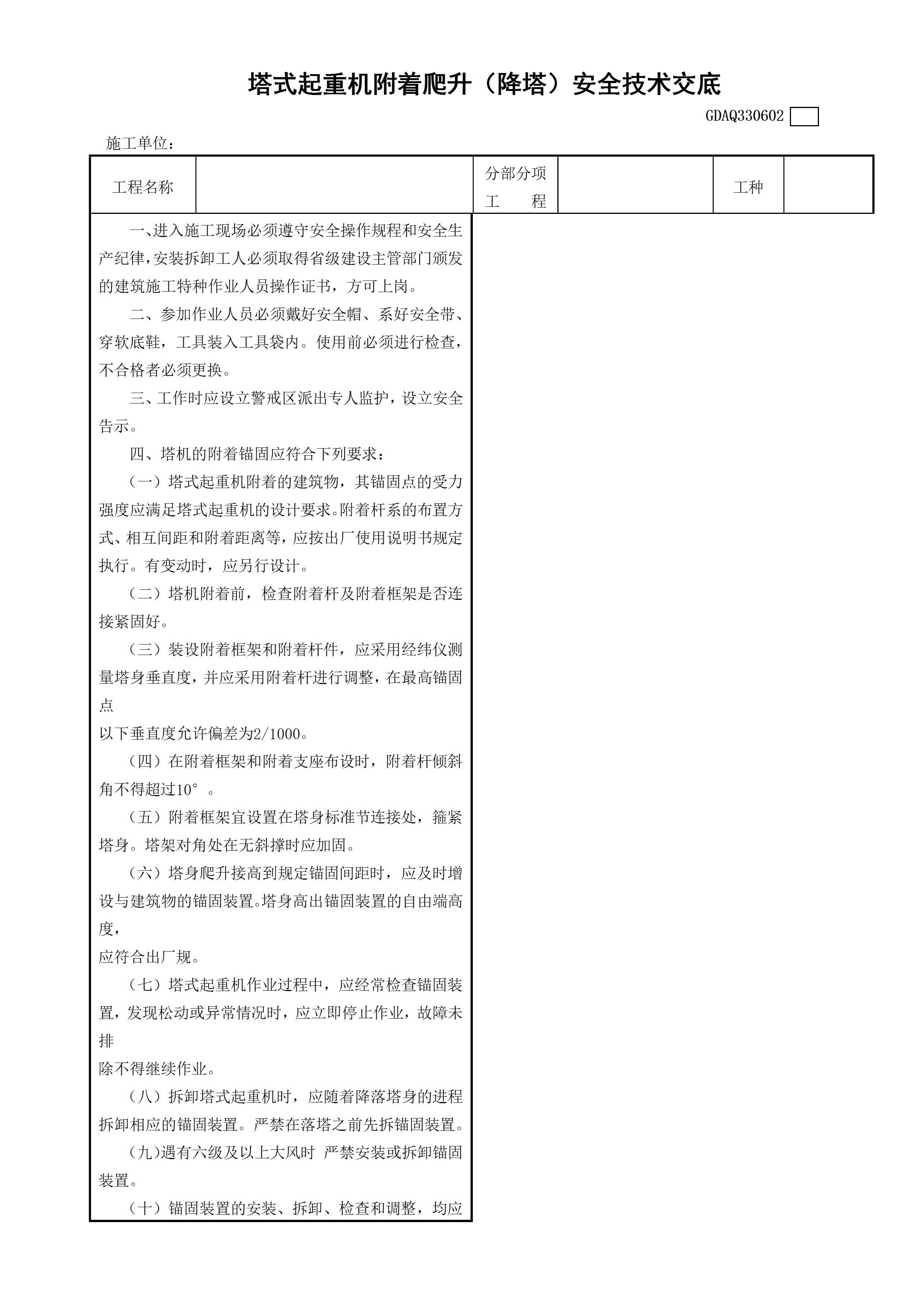 / 塔式起重机附着爬升(降塔)安全技术交底GDAQ330602