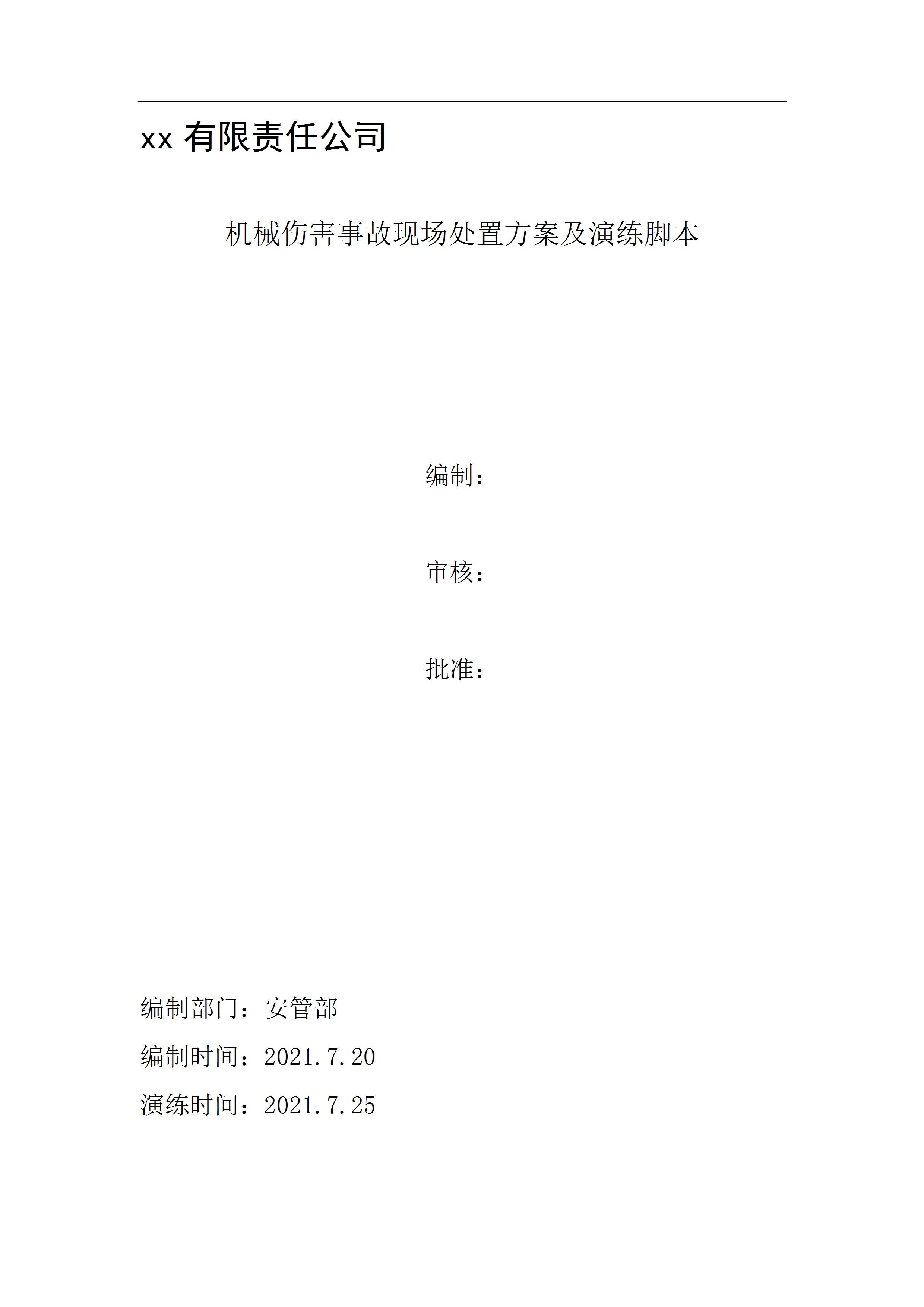 / 机械伤害事故现场处置方案及演练脚本[文档]