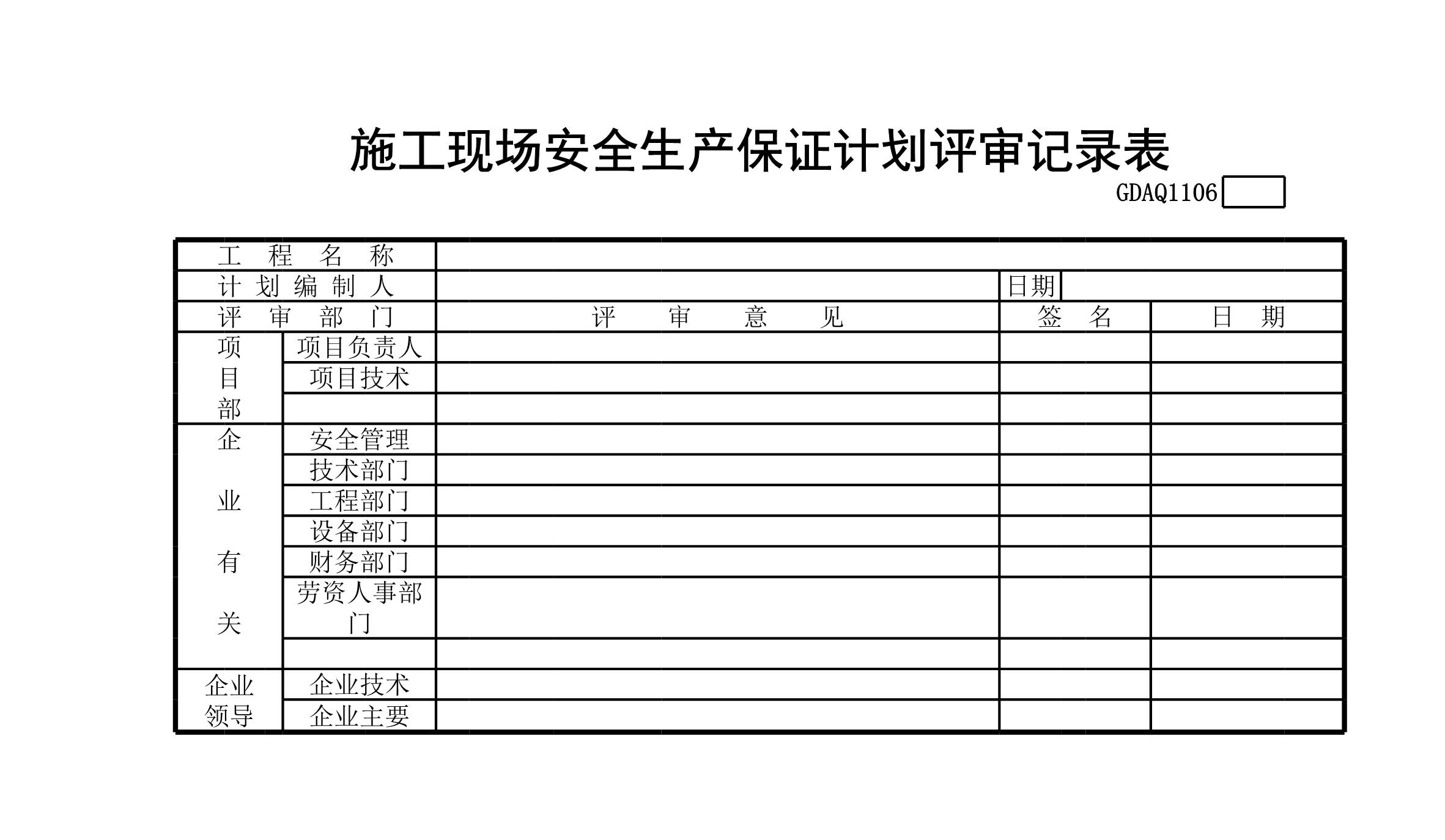 / 施工现场安全生产保证计划评审记录表GDAQ1106