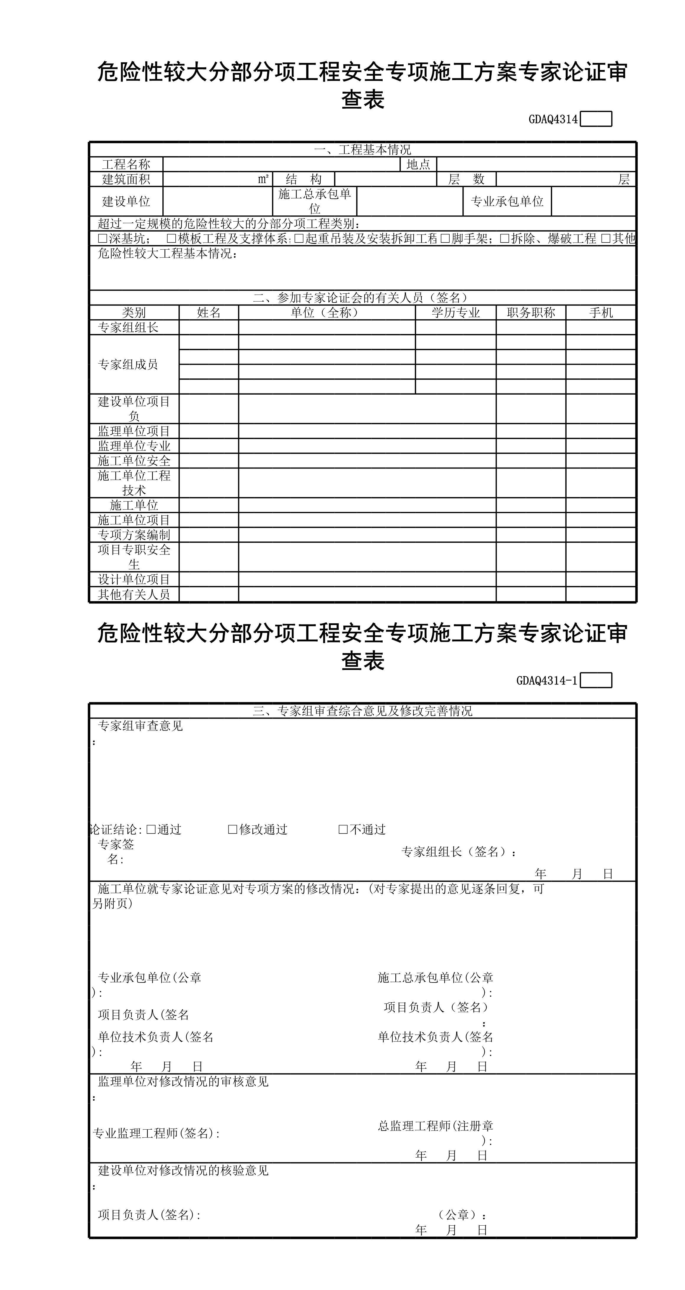 / 危险性较大分部分项工程安全专项施工方案专家论证审查表GDAQ4314
