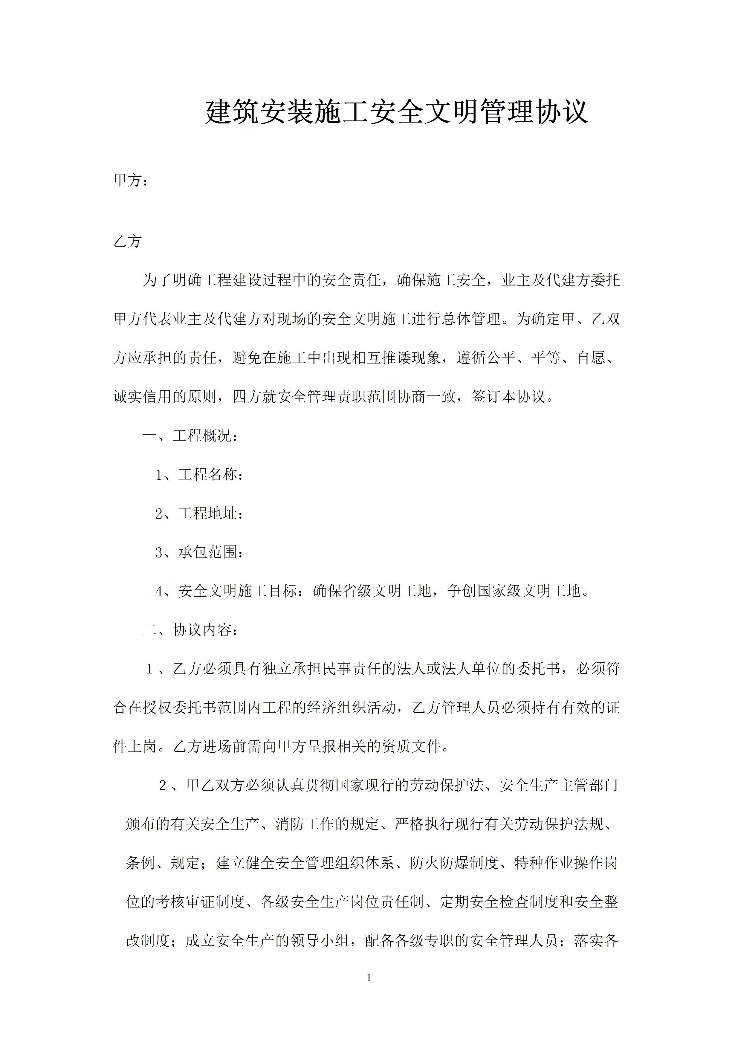 / 建筑安装施工安全生产协议(原版)
