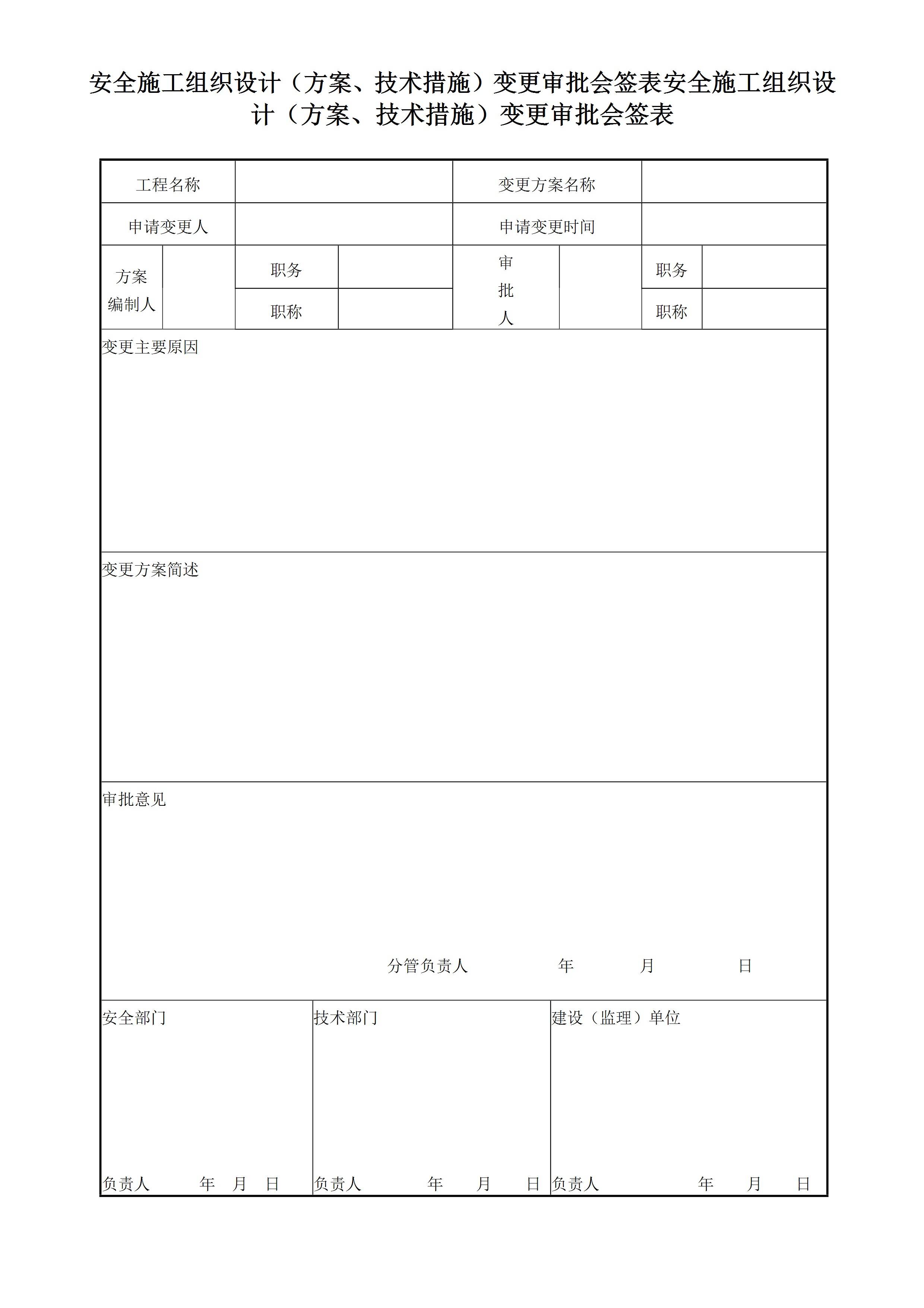安全施工组织设计(方案、技术措施)变更审批会签表