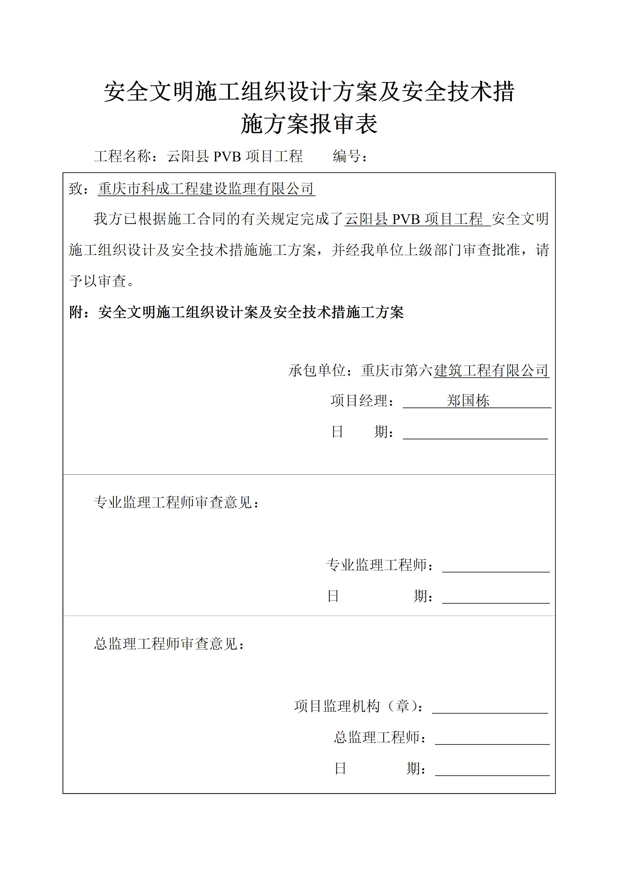 安全文明施工组织设计方案及安全技术措施施工方案及报审表