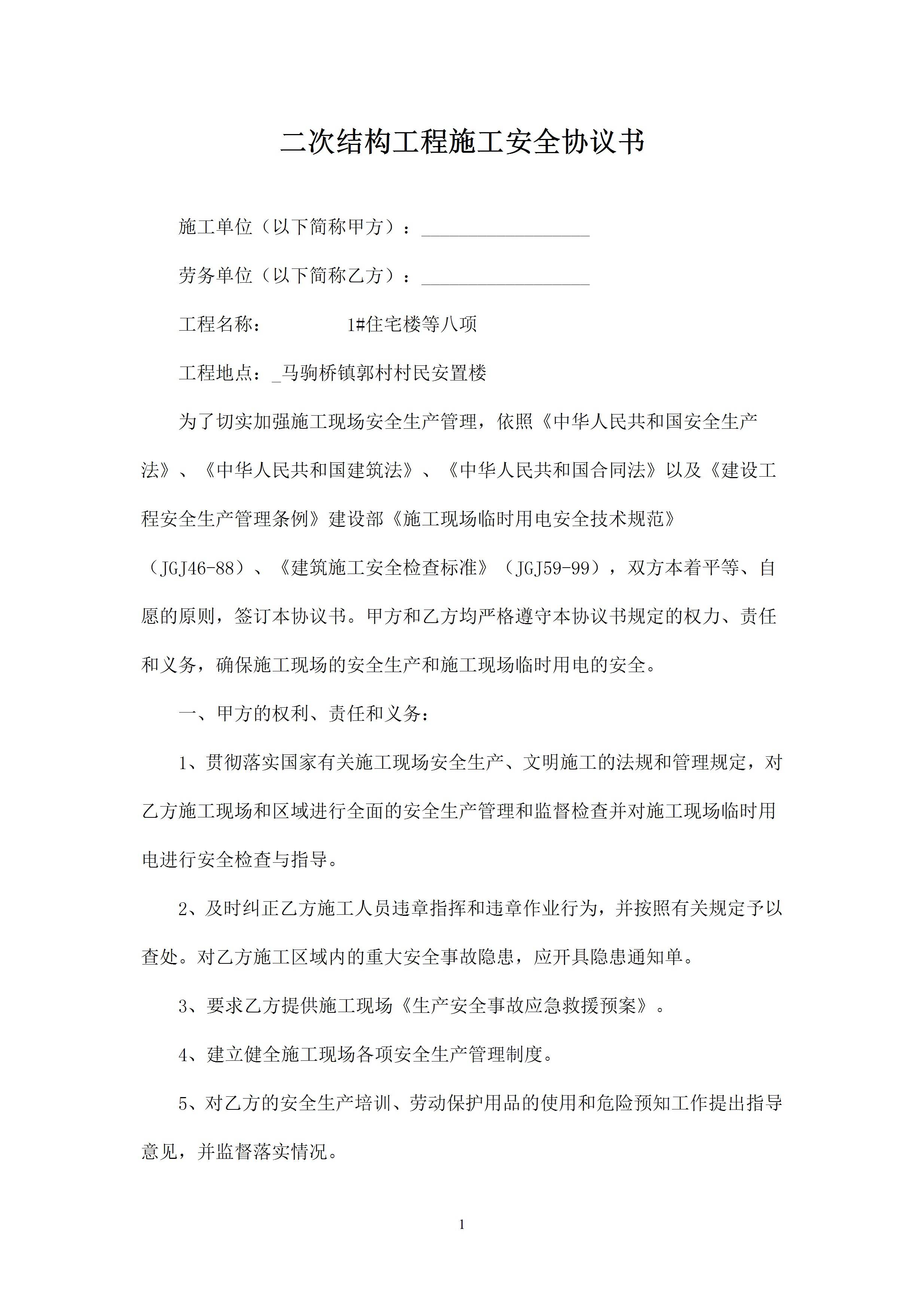 / 二次结构工程施工安全协议书