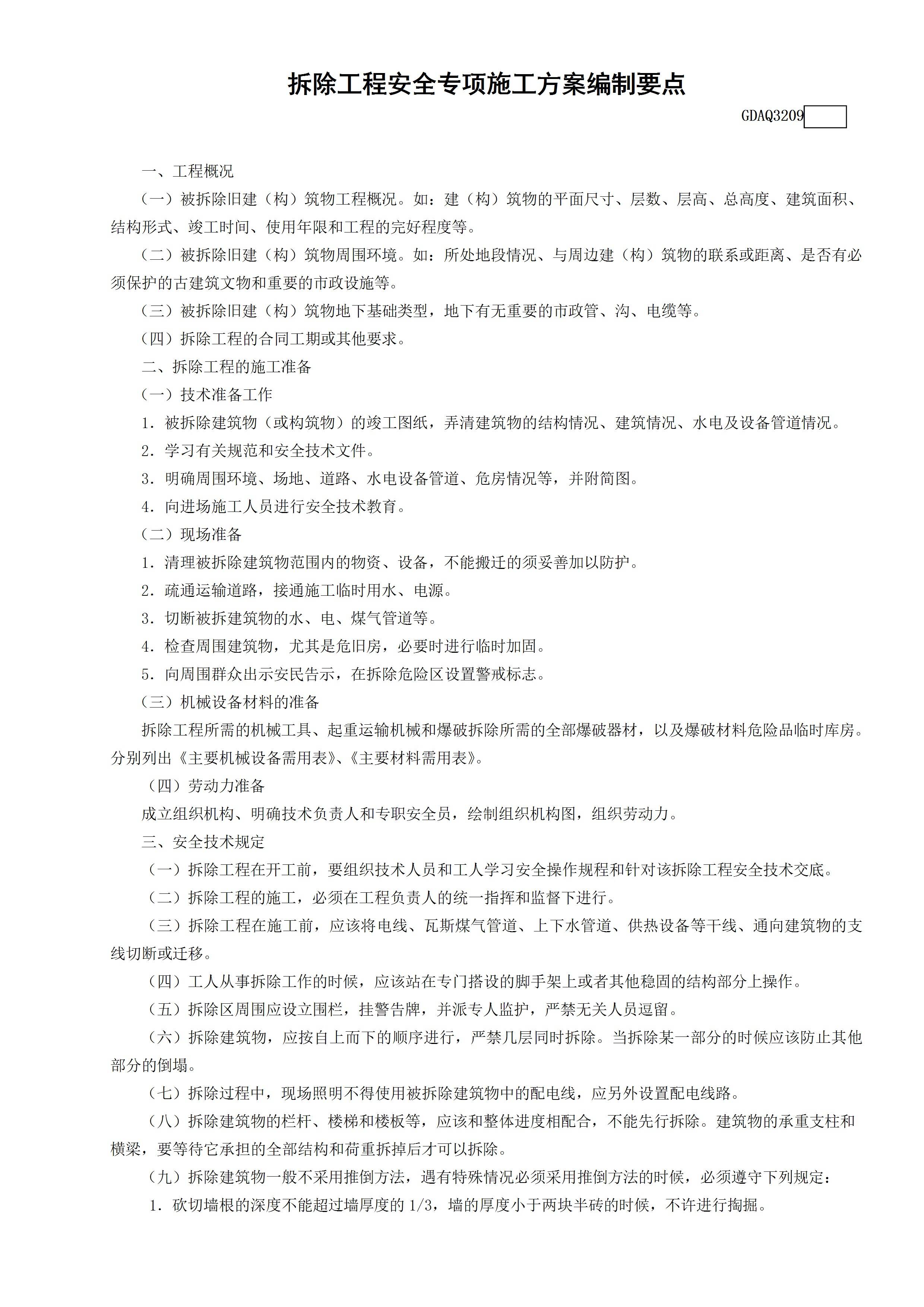 / 拆除工程安全专项施工方案编制要点GDAQ3209