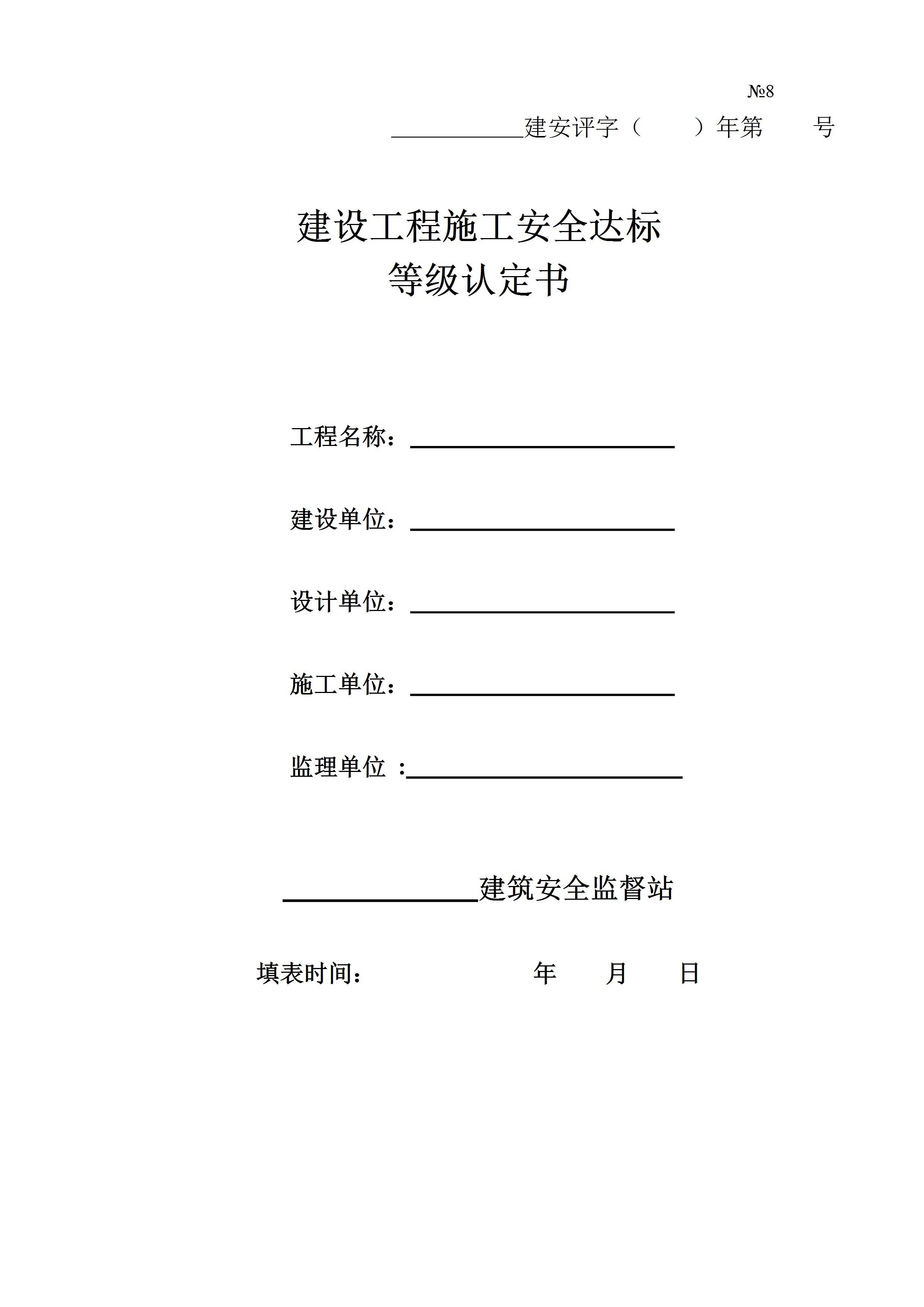 / 建设工程施工安全达标等级认定书
