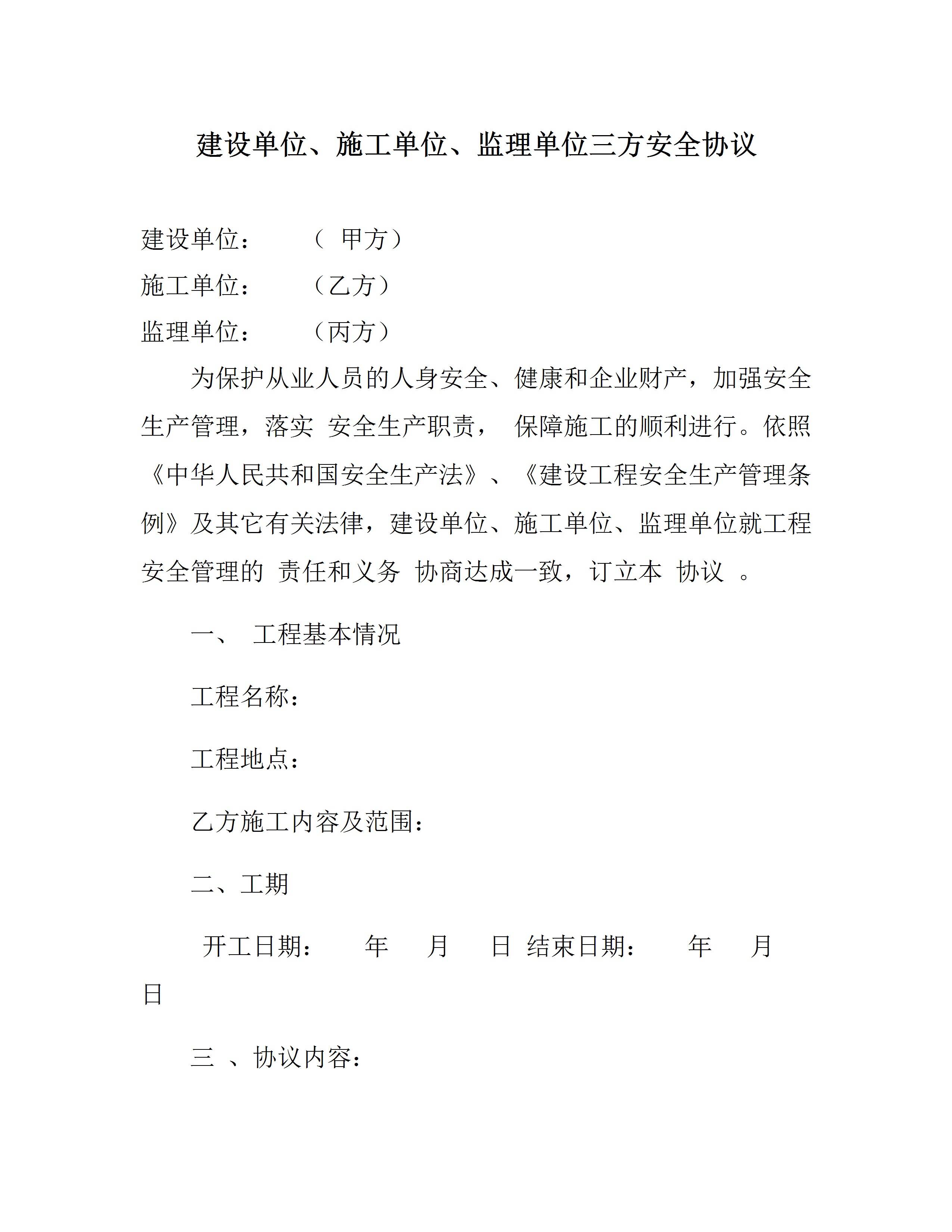 建设单位、施工单位、监理单位三方安全协议(7页)