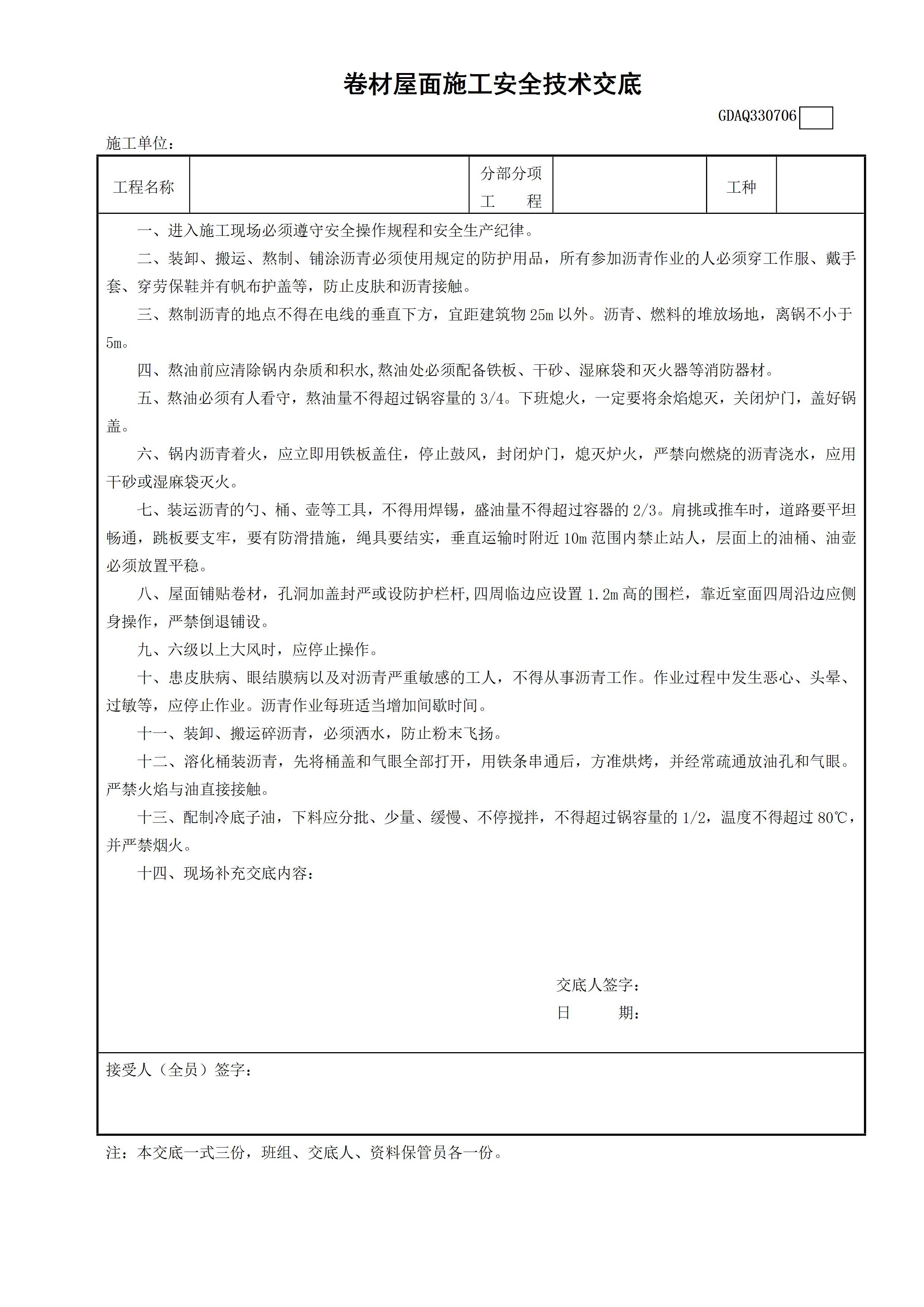 / 卷材屋面施工安全技术交底GDAQ330706