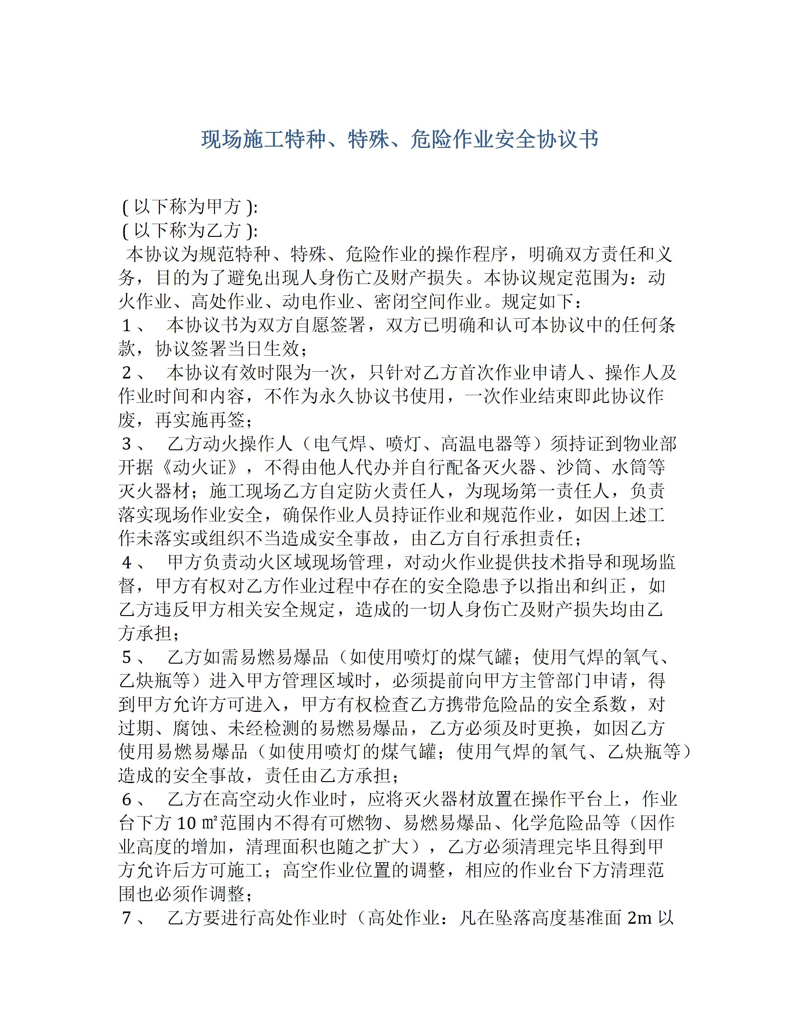 / 现场施工特殊、危险作业安全协议书(4页)