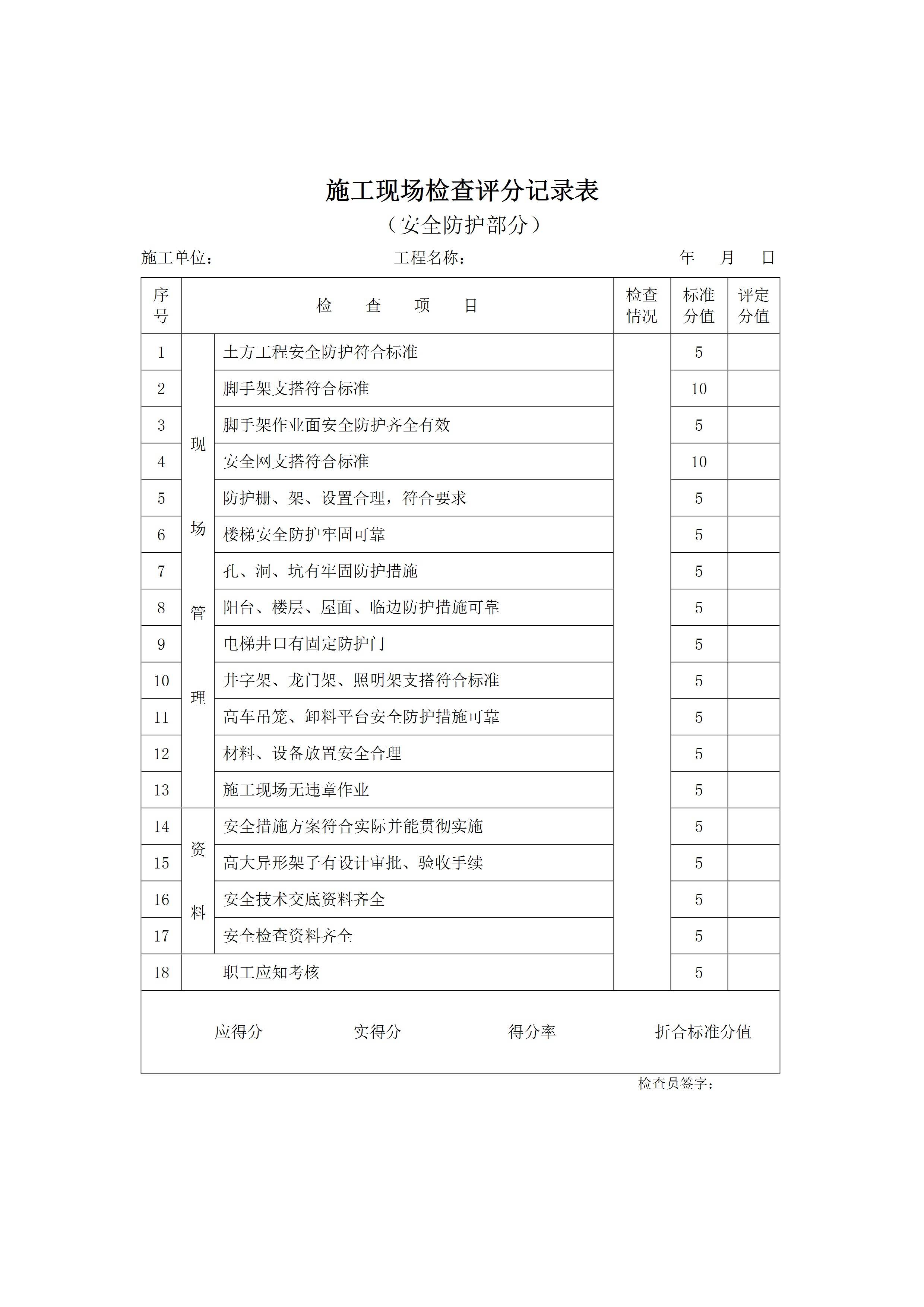 / 施工现场检查评分记录表(安全防护部分)