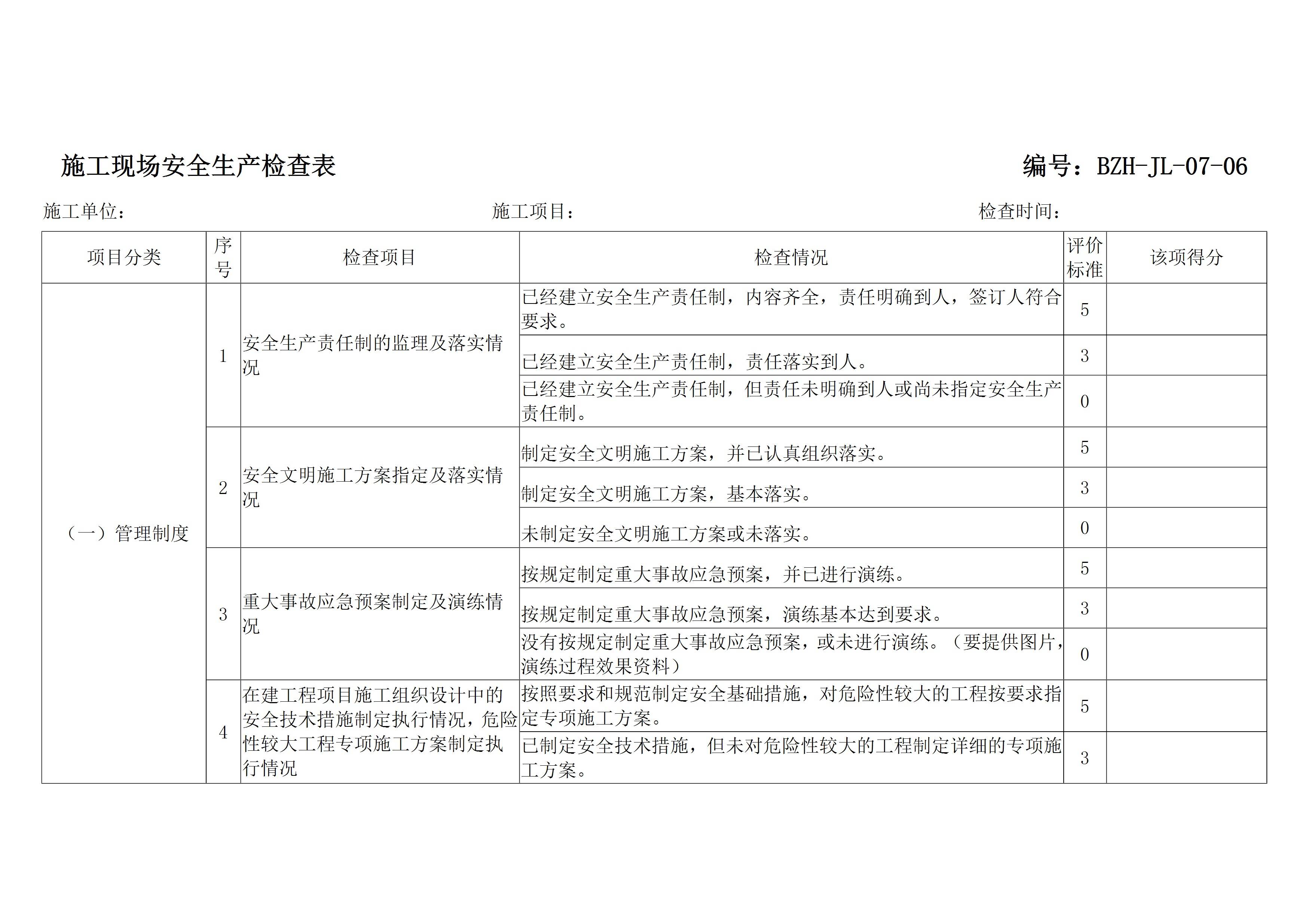 施工现场安全生产检查表(参考)